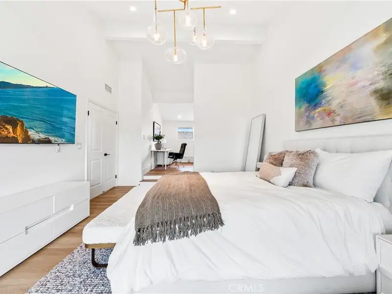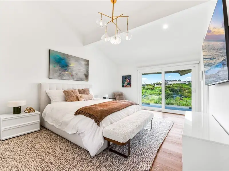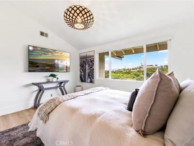 Upstairs, the spacious primary suite offers the ultimate retreat, with breathtaking canyon and ocean views from your private balcony — perfect for a quiet morning coffee or a sunset evening. The suite includes a cozy gas fireplace and a luxurious en-suite bath, with dual vanities, quartz countertops, a large walk-in shower, and a custom-built closet with ample storage. Two additional bedrooms provide space for family or guests, each offering comfort and privacy.