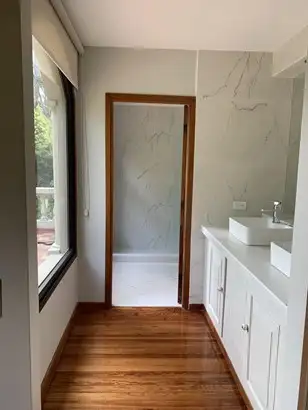 P. A. Hall de distribución; master suite con acceso a hermosa terraza con balaustre, baño compartimentado con amplia ducha, dos dormitorios, uno de ellos con mueble estilo provenzal (placard), el otro con placar convencional; comparten baño completo con bañera.