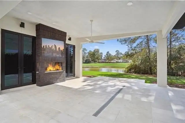 - Oversized covered patio with gas fireplace