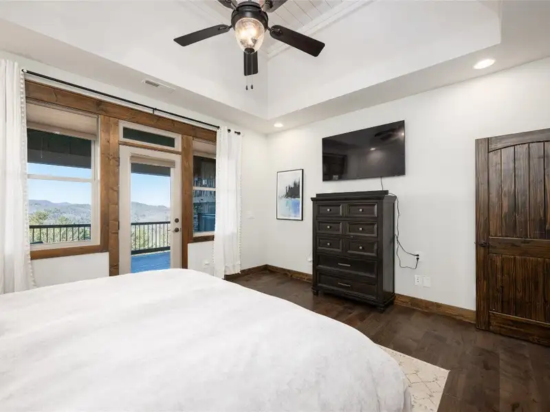 Discover the perfect blend of craftsmanship, comfort, and breathtaking mountain and lake vistas in this custom-built Arts and Crafts home, nestled within the gated community of Greycliff. Just a 15-minute scenic drive from the charming town of Cashiers, this home offers the serenity of mountain living with convenient access to Lake Glenville and a community boat dock. Situated at an elevation of 4,000 feet on about 1.37 acres, delight in cool temperatures and year-round natural beauty. Offered fully furnished with few exceptions, this meticulously maintained home is truly move-in ready to enjoy this season. With historically low inventory on the plateau, now is the time to secure a dream mountain retreat in a community experiencing exciting small-town charm and growth. Thoughtfully designed with high-quality materials, this home showcases timeless architectural elements, including cedar shakes, stone columns, and a welcoming entryway. 2024 updates include fresh interior and exterior paint, newly installed hardwood floors throughout, and stunning Cristallo Quartzite countertops in the spacious kitchen. The open-concept floor plan is perfect for entertaining and relaxation. The great room features a striking stone fireplace, soaring ceilings, and expansive windows that frame mesmerizing long-range mountain views. The well-appointed kitchen provides ample storage, a large walk-in pantry, and an inviting layout for culinary creations. The main level features a luxurious primary suite with a spa-like ensuite bathroom and private deck access - an ideal spot to wake up to breathtaking mountain scenery. A second main-level bedroom with an ensuite bathroom ensures comfort and privacy for guests. The lower level offers a generous family room, media and game area, and two additional bathrooms and bedrooms, one of which includes four built-in bunk beds. Above the spacious two-car garage, a large bonus room presents endless possibilities, whether as a home office or workout space - all while showcasing incredible long-range mountain views. Designed for embracing the great outdoors, this home features expansive decks on both the main and lower levels, complete with a fireplace, grilling area, and hot tub. Greycliff is vacation rental-friendly, offering excellent investment potential while maintaining a peaceful retreat. Ready to leave behind the heat and hustle of city life? This stunning mountain home provides the perfect sanctuary.