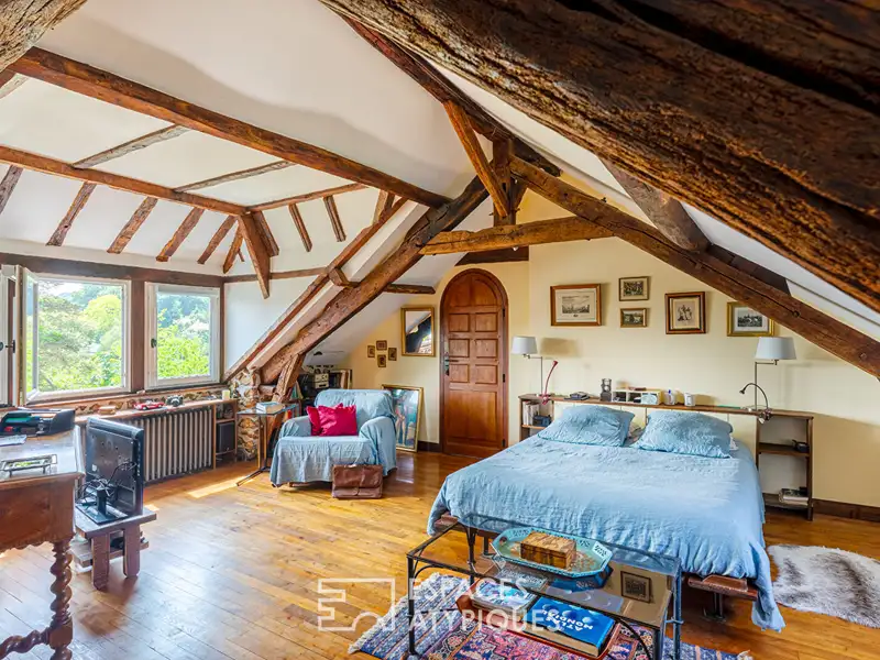 The top level is dedicated to a superb master suite occupying the entire floor: a vast attic bedroom, a large dressing room and a private bathroom make up this intimate and bright space, designed as a refuge of absolute calm with a breathtaking view. Combining the charm of the old with a functional layout, this house with balanced volumes will appeal to lovers of beautiful stones, places imbued with authenticity and a sought-after village life, just a few kilometers from Versailles and Paris.