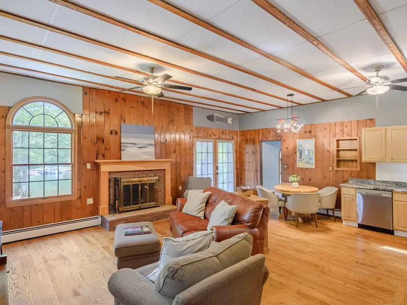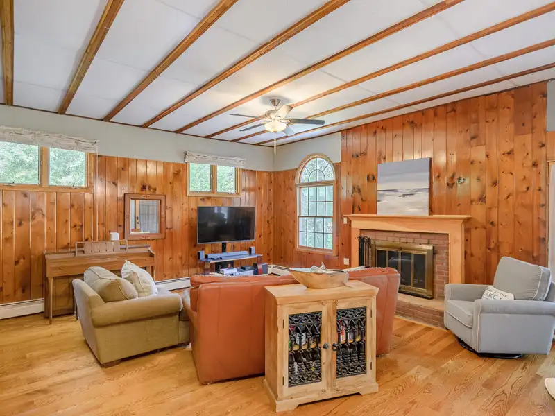 - Stone fireplace in family room