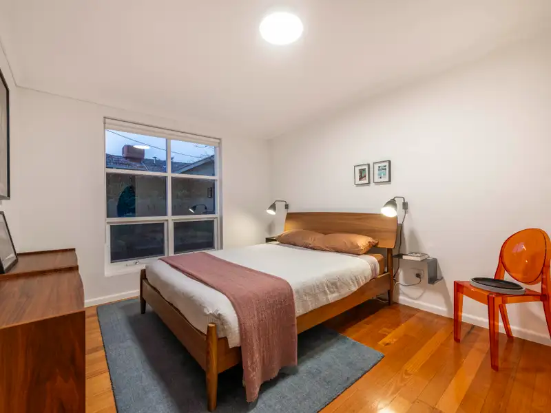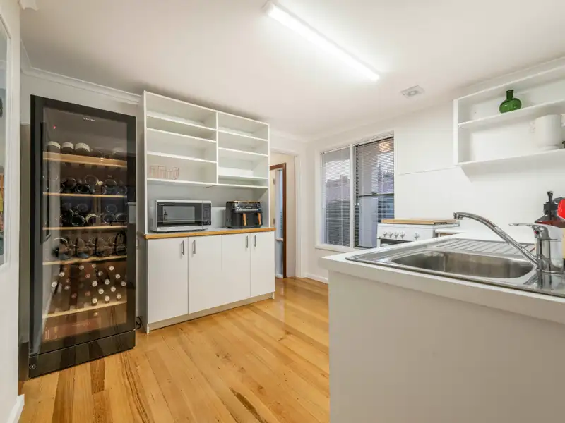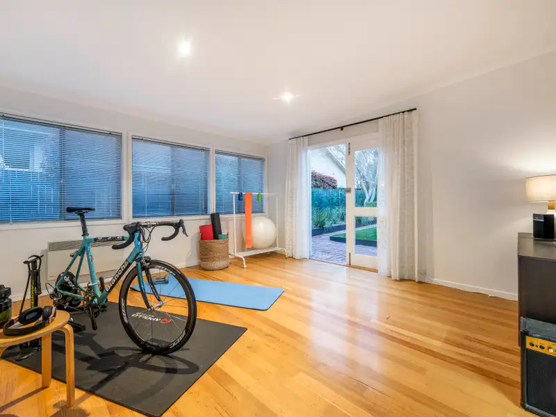 The main residence offers three generous bedrooms, two bathrooms, a formal living room with fireplace, separate dining, and a light-filled family room at the rear-all complemented by polished Tasmanian oak floors, soaring ceilings, and expansive picture windows that frame tranquil garden vistas and glimpses of Red Hill bushland.
