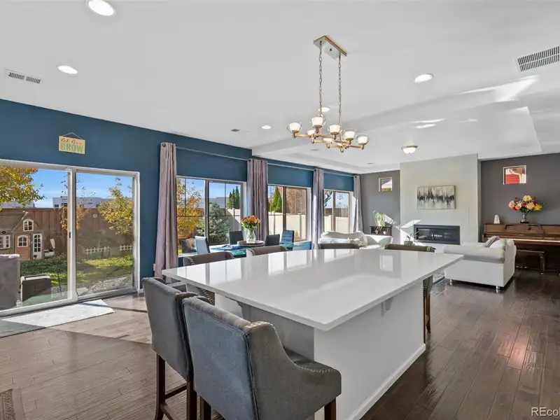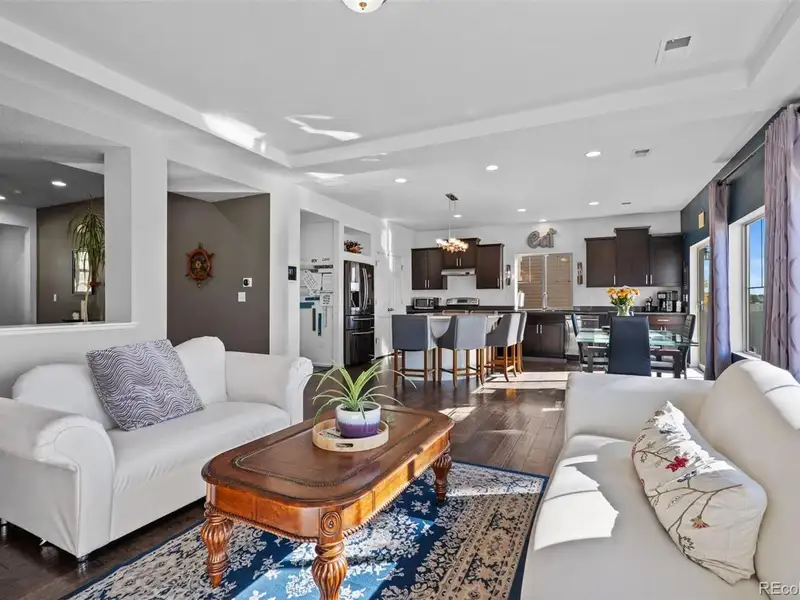 - Open concept with natural light and wood floors