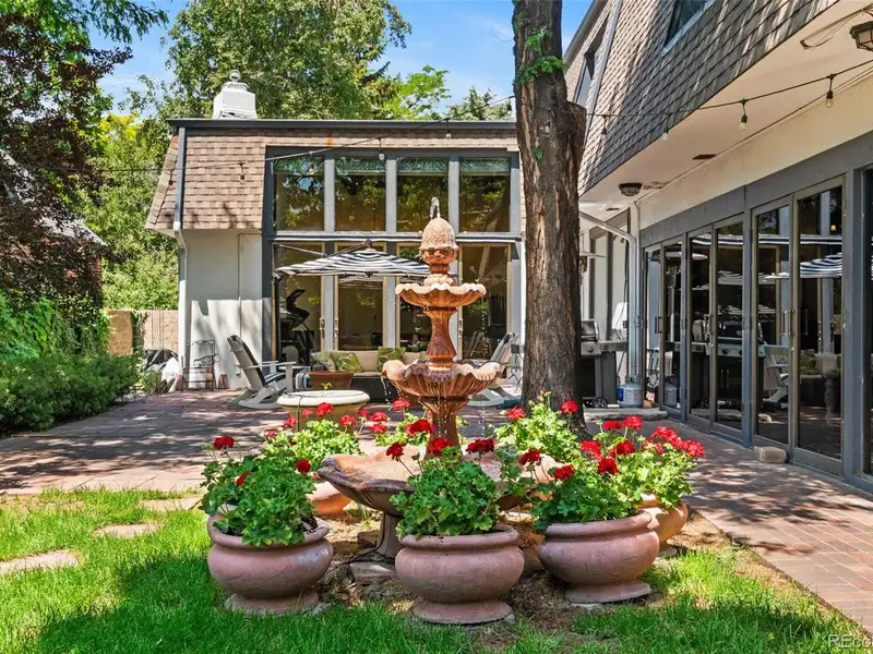 - Expansive landscaped courtyard with water features
