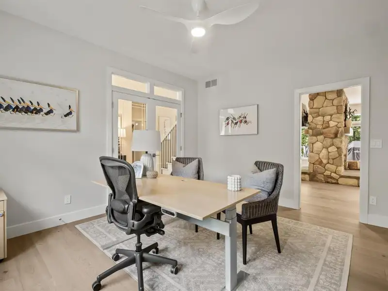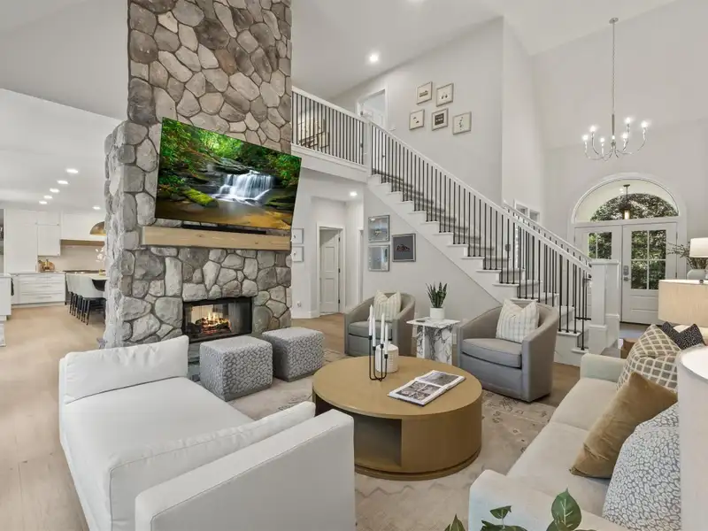- Hickory wide-plank flooring and fireplace