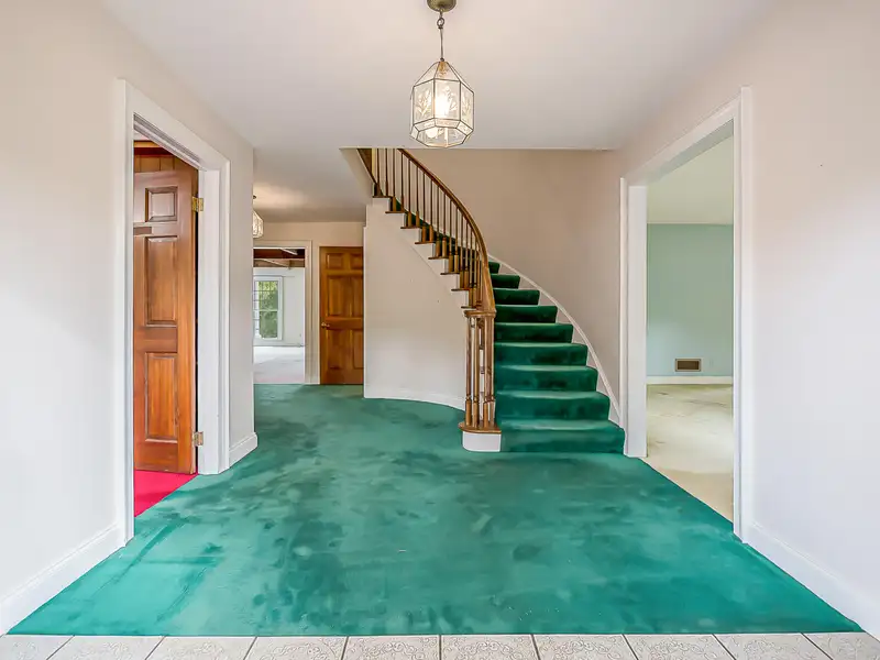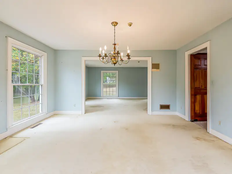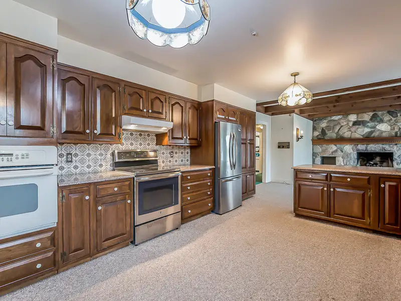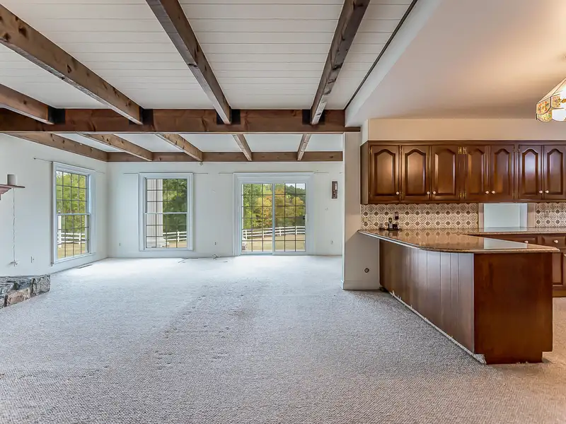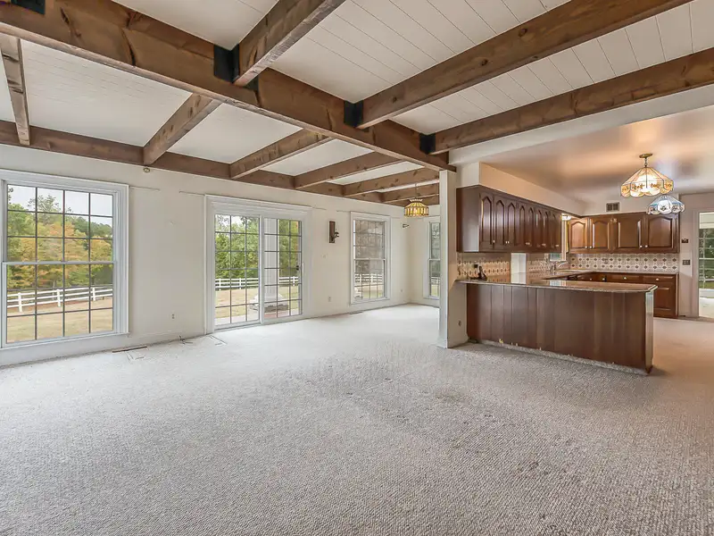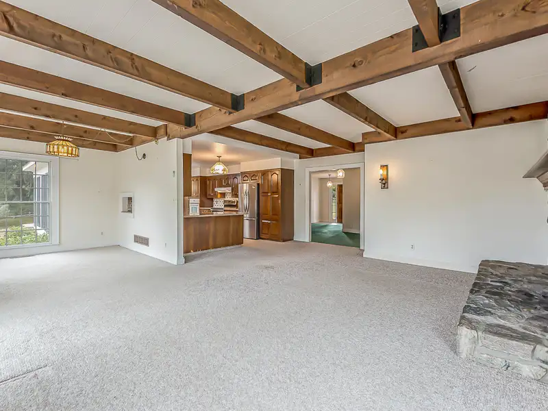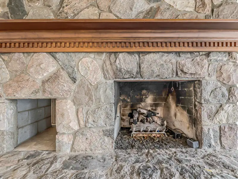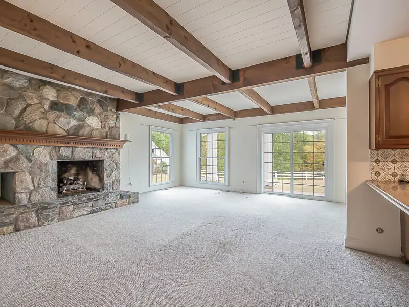 - Family room with fieldstone fireplace