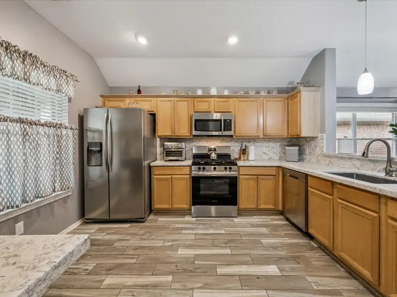 - Updated kitchen with modern backsplash
