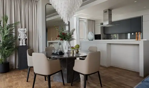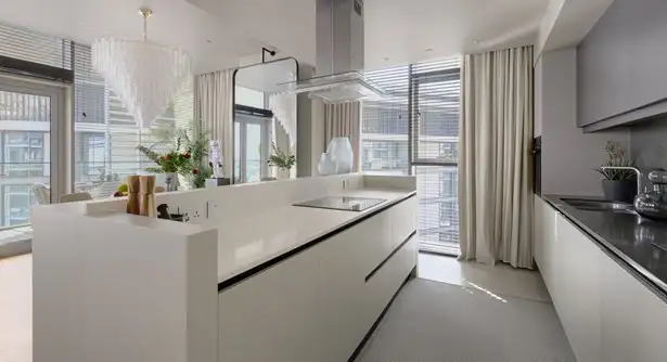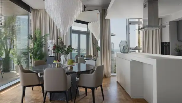 - Floor-to-ceiling windows with natural light