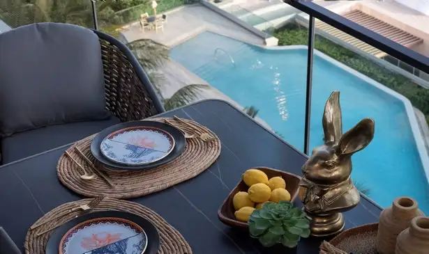 - Large balcony with wooden floorwork
