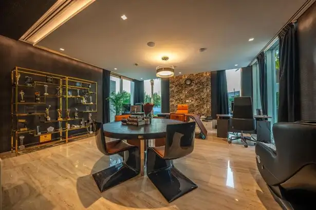 Spanning four meticulously designed floors, this mansion is tailored for both lavish entertaining and intimate gatherings. Whether hosting an unforgettable soirée or enjoying quiet moments with loved ones, every room has been designed to elevate your lifestyle. The expansive living and dining areas feature 24-seat dining arrangements, a spacious breakfast room, and an outdoor swimming pool with a barbecue area — all designed to take full advantage of the property’s breathtaking views.