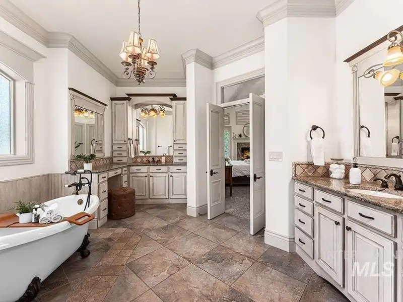 - Main-level master with fireplace, tub