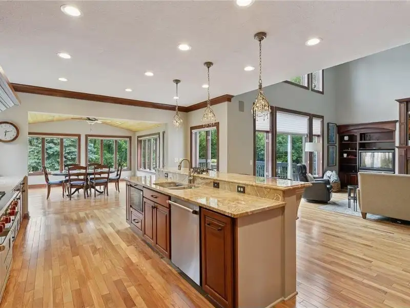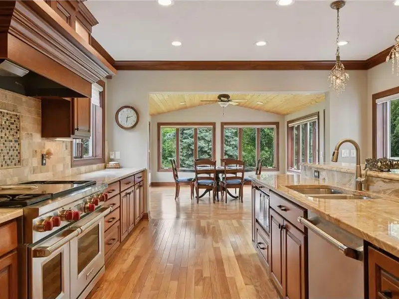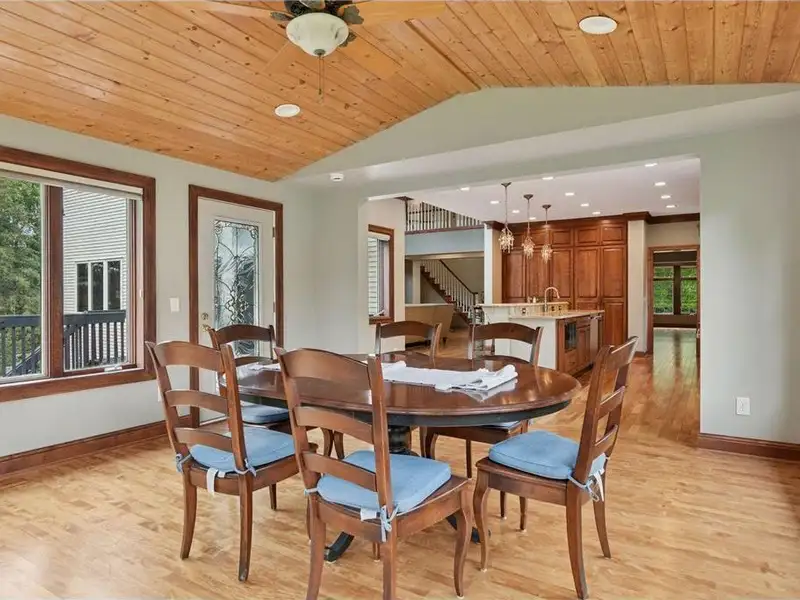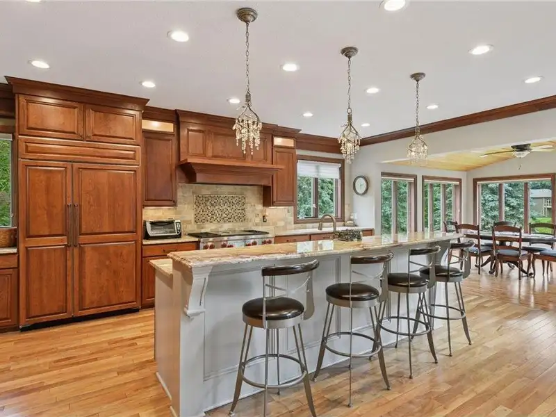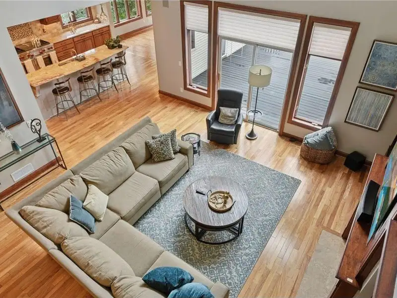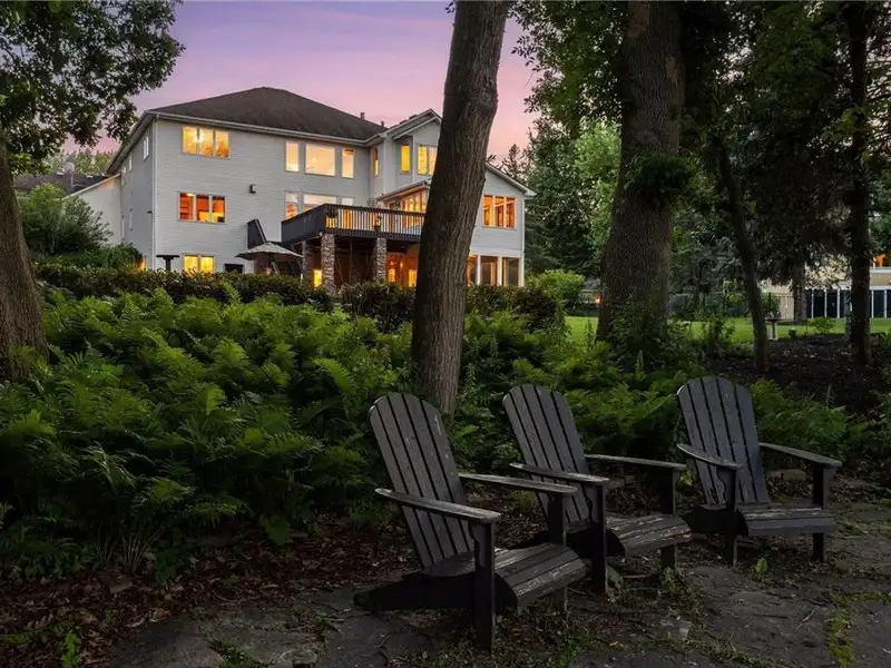 Additional features include three-zone heating and surround sound both indoors and outdoors. The property is situated on a 3/4-acre lot with many windows offering stunning views and ample natural light. It has convenient access to major roads, Flying Cloud Airport, schools, and community centers—making it a perfect location. For bikers and runners, the trail system is just a block from this property, and Miller Park is only minutes away, whether you are walking or biking.