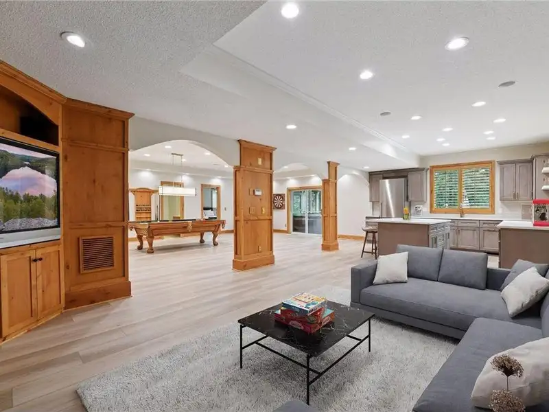 The walkout lower level was remodeled in 2024 and features two additional bedrooms, a 3/4 bath, an amusement room with a gas fireplace, and a full kitchen. You will also find a beautifully relaxing sauna and a storage room with built-in shelving.