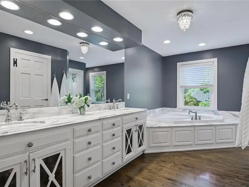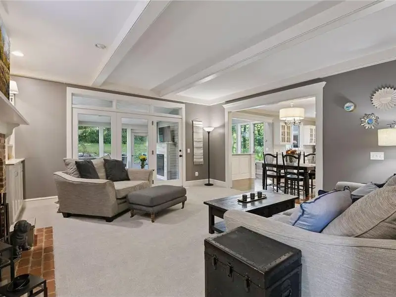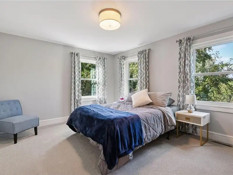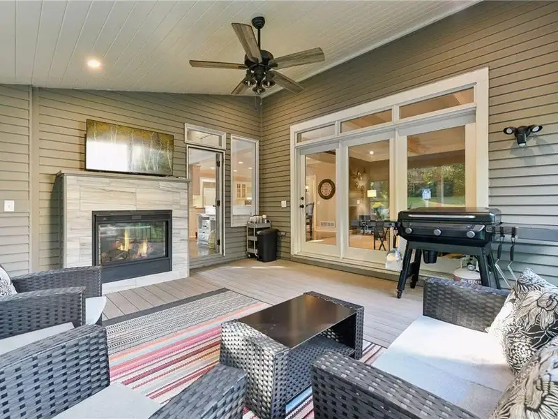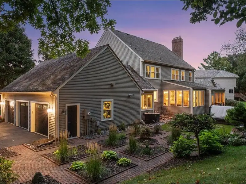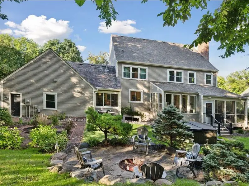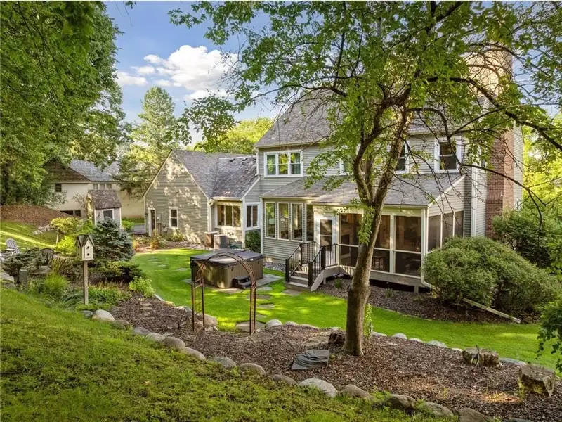 Welcome to this exceptional custom-built New England style masterpiece, tucked within the coveted Olympic Hills Golf Course community. Perfectly situated on a premier lot, this home offers breathtaking panoramic views of Purgatory Creek and an unparalleled blend of elegance, comfort, and timeless charm. From the moment you step inside, you’ll be captivated by the architectural detail, sun-drenched spaces, and warm yet sophisticated design. The gourmet chef's kitchen showcases high-end appliances, including a six-burner Viking cooktop, dual Thermador oven, and a Sub-Zero refrigerator/freezer, offering professional-grade performance with refined, elegant design. Custom white enameled cabinetry, and a large center island, perfect for gatherings and culinary creativity. Adjacent to the gourmet kitchen, this space features a thoughtfully designed butler’s pantry and a planning center—perfect for entertaining, organizing, and everyday convenience. Step inside and feel the inviting coziness and charm throughout this lovely home. Features include: ALL NEW WINDOWS throughout (July 2025 w/ a lifetime warranty). Formal living room highlighted by custom built-ins and a beautifully detailed decorative ceiling, creating an elegant space for both relaxation and entertaining. Spacious main floor family room with rich millwork and custom built-ins accenting the classic brick wood-burning fireplace, offering warmth and character to the heart of the home. Formal dining room boasts gleaming hardwood floors and striking reclaimed wooden beams on the ceiling, combining timeless elegance with a warm, inviting atmosphere—perfect for entertaining and special gatherings. A bright and inviting sunroom, bathed in natural light from an array of windows, featuring a custom planning desk and a decorative see-through gas fireplace, bringing both warmth and charm to this welcoming space. The room you’ll never want to leave, a beautifully appointed 3-season porch featuring low-maintenance decking, a decorative see-through gas fireplace, stylish shiplap on walls and ceiling, and framed views of nature, creating the perfect harmony of comfort, charm, and tranquility. Spacious mudroom featuring a custom-built coat center complete with bench seating—designed for both organization and everyday functionality. Generous main-floor home office boasting custom-built cabinetry and serene views of the surrounding woods, offering a peaceful workspace immersed in nature. The main floor features a generous laundry room complete with custom cabinetry, a utility sink, and a dedicated folding area... The upper level showcases a spa-inspired primary ensuite, complete with a separate soaking tub and walk-in shower, dual-sink vanity, spacious walk-in closet, trayed ceiling, and a classic decorative brick W/B fireplace, elegance and comfort seamlessly combined. The upper level is completed with three additional generously sized bedrooms, a full bathroom featuring a dual-sink vanity, and a loft area equipped with a custom built-in study desk. The lower level features a spacious media room and game area, a wet bar, a fifth bedroom with an adjoining 3/4 bath, and abundant storage, thoughtfully crafted to combine entertainment, comfort, and everyday practicality. Updates include: NEW CARPET throughout the home(June 2025), 3 NEW garage doors(Dec 2024), NEW washer/dryer(2022), NEW dishwasher(2021), additional Features: oversized heated/insulated garage, garden shed, zoned heat/air, garden shed, outdoor jacuzzi/hot tub, Radon mitigation system, lawn irrigation. Located in one of the Twin Cities’ most sought-after communities, this residence combines classic architecture with modern luxury, All of this, just minutes from award-winning schools, abundant shopping, fine dining, and countless parks, trails, and recreational opportunities, everything you need right at your doorstep... Truly a standout property!
