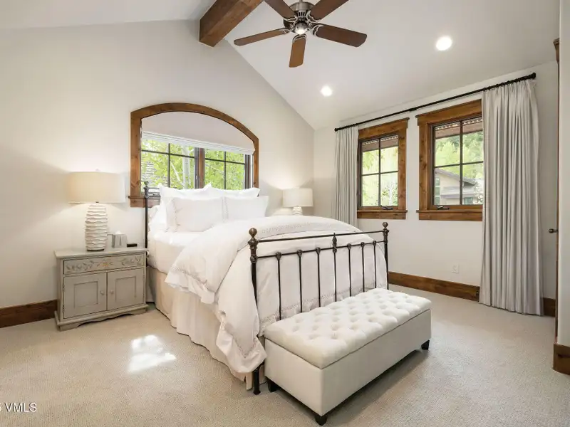 - High vaulted ceilings with wood beams