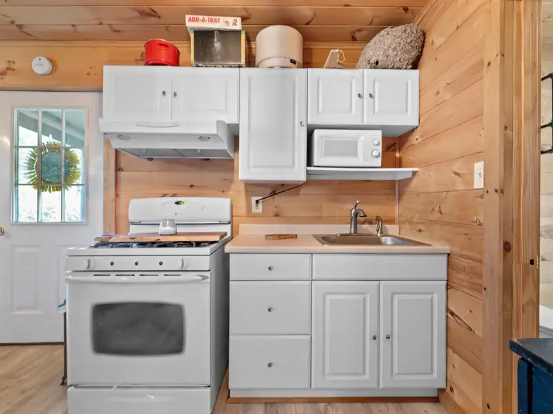 - Soapstone woodstove warms living room