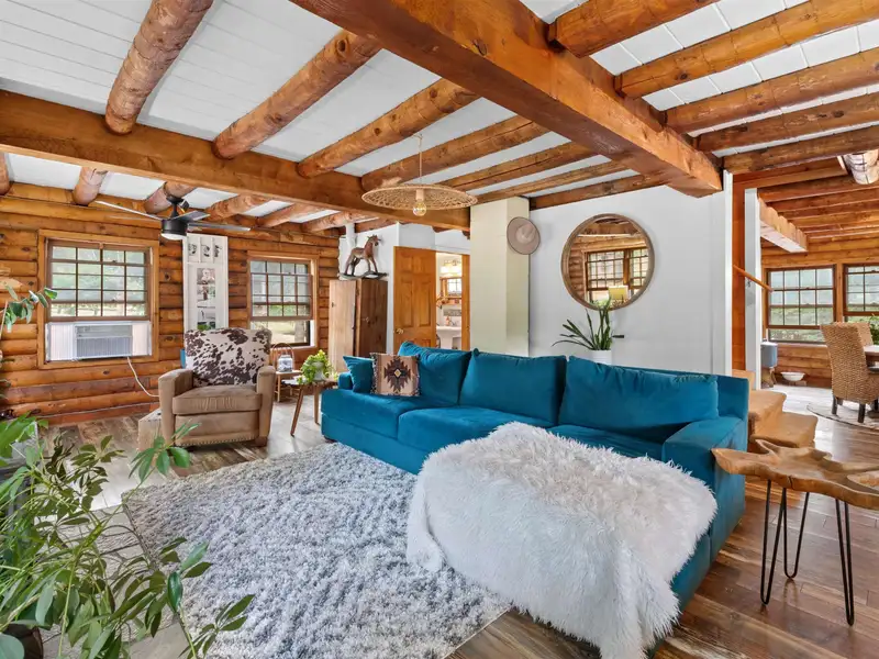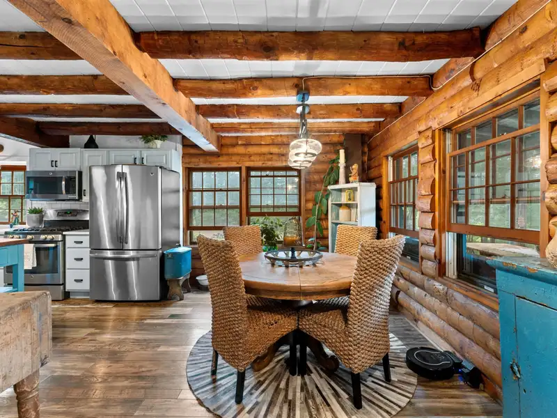 - Gambrel style log home with rustic charm