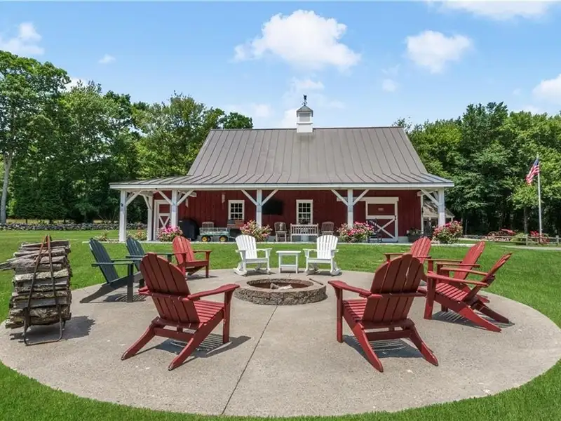 Gerald’s Farm is an elegant country compound nestled in a rolling landscape with tree-lined valleys and manicured lawns. The main estate house, one of the property’s 3 buildings, is the epitome of a refined rural retreat. Enter the soaring foyer with its marble pool and wall of French doors overlooking the gardens. The home’s main living spaces welcome the outside in through stunning fenestration and an airy, open feel. The spacious chef’s kitchen has custom cabinetry, marble countertops, and top-of-the-line appliances. A 1st-floor primary suite with a spa-like ensuite bath makes this the perfect multi-generational property. Up the graceful, winding staircase are 3 more generous bedrooms, 2 marble-clad baths, and a home gym. Continuing out to the park-like grounds, you discover a separate, 2-story carriage house with a dramatic vaulted main hall, ideal for entertaining on a grand scale. Above is a full in-law apartment allowing for a gracious guest suite. The crowning touch is an Amish-built barn featuring a sprawling terrace and fire pit, enhancing the already exceptional list of outdoor amenities. Situated at the crossroads of Exeter, North Kingstown, and East Greenwich, this home is positioned for taking full advantage of Southern R.I.’s natural beauty. Enjoy unparalleled privacy plus easy access to Providence, Boston, and New York. This is a once-in-a-lifetime opportunity for serene country living in one of the region’s finest estates.