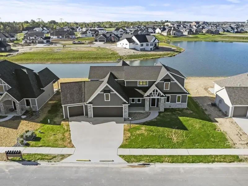 New Construction, completed and ready to move in! Welcome to Bob Buescher Homes' latest custom-designed two-story home in Mercato. This stunning residence is situated on a picturesque waterfront lot and features an elegant exterior with beautiful stone accents, board and batten siding, and shake details, creating a captivating first impression. Spanning 3,426 square feet, the home includes four bedrooms, 3.5 bathrooms, and a lovely sunroom. It also boasts an oversized three-car garage, totaling 1,061 square feet, providing ample space for vehicles and storage. Upon entering, you will find an open-concept living area highlighted by a vaulted two-story ceiling that fills the space with natural light, creating an airy and inviting atmosphere. This expansive area seamlessly connects to the gourmet kitchen and dining space, making it ideal for gatherings and entertaining. The kitchen features custom-designed cabinets by Zehr, a spacious 5x8 island, and a large 10-foot deep walk-in pantry to meet all your storage needs. Adjacent to the dining area is a versatile sunroom, suitable for use as an office or a peaceful retreat for reading and relaxation. The primary bedroom, conveniently located on the main level, serves as a sanctuary of comfort and luxury. It offers generous dimensions, an en-suite bathroom with a double vanity, a tile walk-in shower, a water closet, and an expansive walk-in closet. The laundry room is also located near the primary bedroom, enhancing the home's functional design. On the second level, you will find three additional bedrooms, a Jack and Jill bathroom, and another full bathroom, providing ample space for family and guests. A significant bonus space is thoughtfully positioned on the opposite side of the home from the bedrooms, ensuring privacy and flexibility for various uses. Direct attic access further enhances convenience and storage capabilities. The outdoor living space is equally impressive, featuring a large covered porch offering stunning views and an idyllic setting for relaxation. This remarkable Bob Buescher home is more than just a house; it represents a lifestyle waiting for you. With its thoughtful design, premium finishes, and unparalleled location, it offers a sanctuary you will cherish. Mercato is conveniently located near restaurants, shopping, I-69, and Lutheran Hospital.