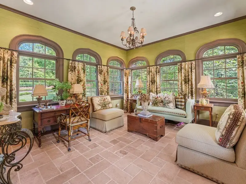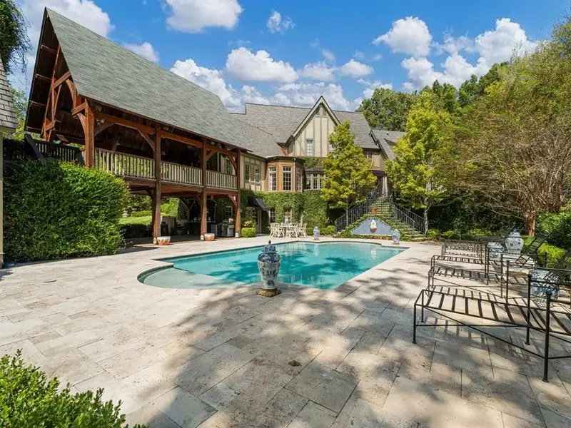 Tudor estate, built just 19 years ago & nestled on 14 secluded acres mere minutes from Columbus, is the perfect marriage of Old World charm & modern luxury. The magic begins with the foyer grand staircase & dreamy formal Living Room with its impressive custom limestone mantel fireplace,setting the tone for the elegance thru out.Lively dining awaits in the stunning Dining Room, featuring a dramatic bank of windows. A jewel of this home is the enchanting sunroom w/ custom arched windows wrapping three sides. All three of these wonderful spaces provide a perfect transition to the expansive Veranda, extending the living space into the natural beauty &offering breathtaking views of the pristine pool & woods.No detail was left unturned in the planning of the fabulous kitchen. With an abundance of custom cabinetry, Viking appliances, farm sink, prep sink, island, casual dining area & a very useful Butler's Pantry, it is truly a gourmet cook's dream.Just off the kitchen is a handsome wet bar, den w/ fireplace & coffered ceiling & an elegantlyappointed powder room. The grand staircase leads to an upper story luxurious Primary Bedroom retreat & three additional spacious bedrooms, each with en-suite bathrooms, plus a charming bonus room offering endless possibilities.The lower level provides practical luxury w/ a convenient laundry room, bonus room & storage room, all w/ direct access to the pool & covered patio grilling area.The home showcases exquisite craftsmanship at every turn: Rich hardwood floors thru out, complemented by distinctive arched openings. Every detail has been thoughtfully curated from elegant leaded glass, specialty windows & doors to antique chandeliers, & custom wrought iron, adding authentic period character. Designer wallpaper, & exquisite millwork complete the sophisticated aesthetic. Bonus - Charming 800+ guest house! Call to see this architectural masterpiece capturing the romance of a bygone era while offering every contemporary comfort!