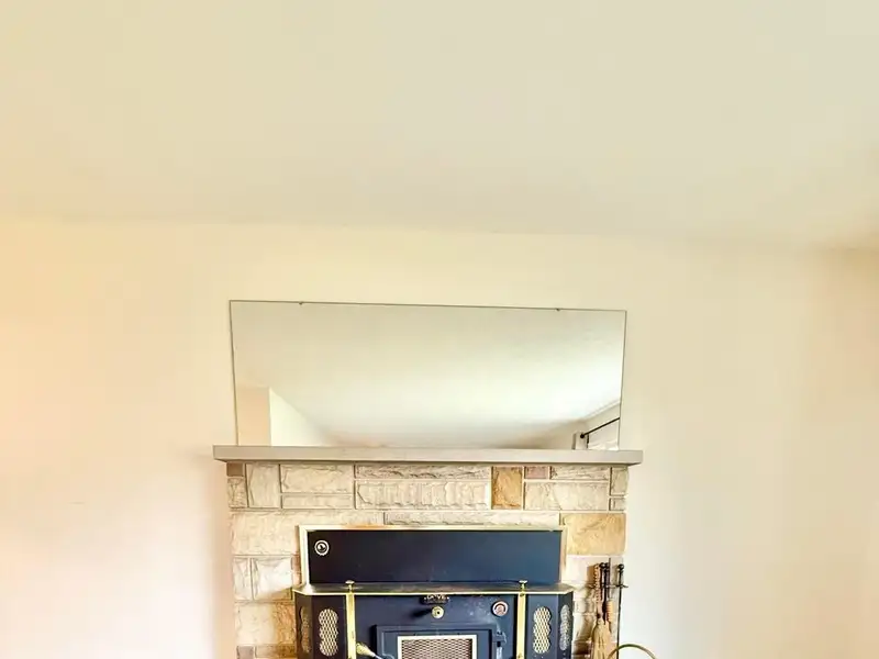 - Wood-burning stove in living room