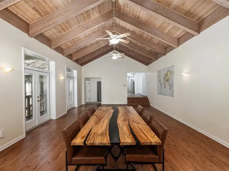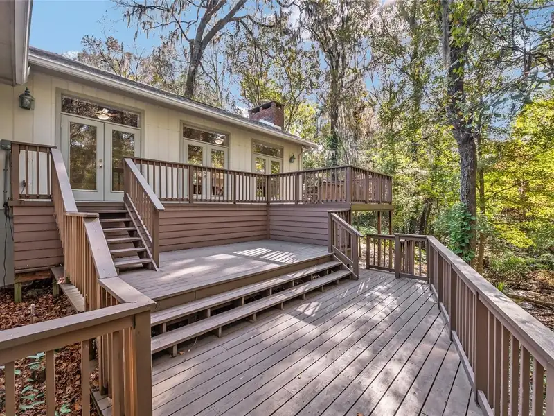 Welcome to a hidden gem where natural beauty meets generous living. This 4-bedroom, 3-bathroom home offers 3,336 square feet of thoughtfully designed space, wrapped in windows that bring the outdoors in and fill every room with natural light. Set along a peaceful creek on 1.39 acres, this property blends privacy, character, and comfort in one stunning setting. Step inside to a massive great room crowned with cathedral ceilings, detailed in warm wood tones that create an inviting lodge-style feel. The open flow leads out to an expansive deck overlooking the wooded landscape and creek—perfect for entertaining or quiet mornings surrounded by nature. Thoughtful hardscaping and long-lasting composite fencing make outdoor living both beautiful and low-maintenance. The spacious owner’s suite offers a private escape with its own screened-in porch, ideal for relaxing to the sound of flowing water and rustling trees. A bonus room downstairs adds versatility as a workshop, creative space, or additional storage. With a 2018 roof and septic system replaced in 2020, the big-ticket items are already taken care of. This is more than a home—it’s a tranquil sanctuary designed to embrace the outdoors while offering the room and comfort you’ve been looking for.