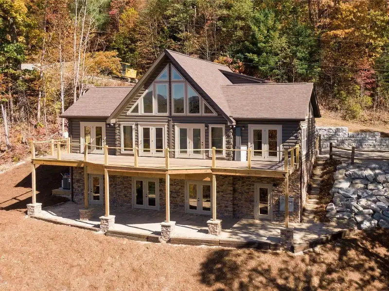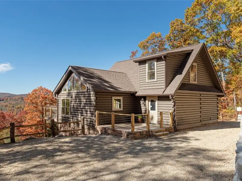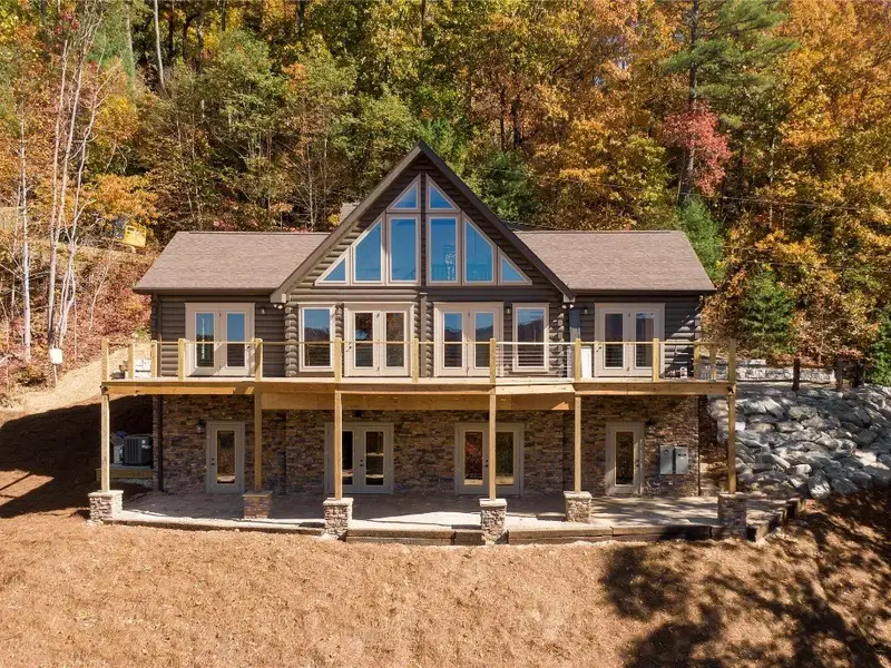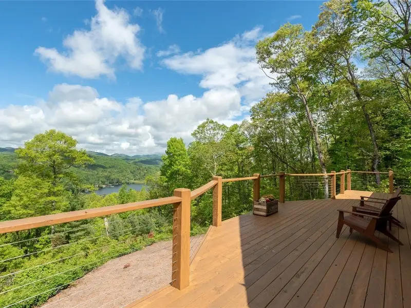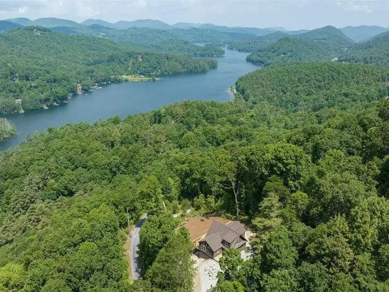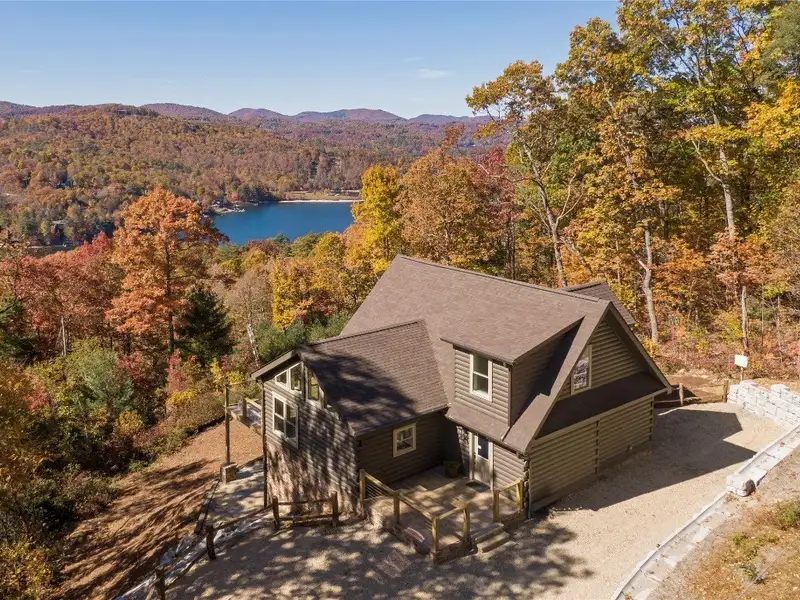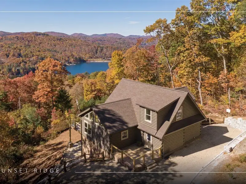 Completed in early 2024, this stunning new Blue Ridge Log Home overlooking Lake Glenville, NC, is designed to showcase the breathtaking sunset views over the lake. Crafted from solid eastern pine logs with extended roof lines and expansive decks, this home seamlessly blends indoor living with the beauty of the outdoors, offering front-row seats to nature's nightly masterpiece. The modern but rustic finishes exude traditional charm while maintaining eco-friendly appeal, perfectly complementing the surrounding landscape. From every angle, you'll be captivated by the long-range vistas of Lake Glenville and the Blue Ridge Mountains, with the sunsets stealing the show each evening. Step inside to a flood of natural light pouring through enormous windows and soaring vaulted ceilings, accentuating the A-frame's airy, open design. The stylish kitchen, featuring granite countertops and top-of-the-line appliances, flows effortlessly into the dining area-ideal for gathering after a day of sunset-watching. The spacious primary suite is a retreat unto itself, complete with a generous living area, double sinks, a massive walk-in shower, and a luxurious soaking tub, all framed by those unforgettable views. Upstairs, a private loft offers an additional bedroom, full bathroom, and ample storage, while the lower level provides even more space with another living area, two bedrooms, and two bathrooms-perfect for family or guests. The true magic happens outside, where the upper-level deck and expansive lower-level patio invite you to unwind with refreshing lake breezes, afternoon cocktails, and, of course, the jaw-dropping sunsets over Lake Glenville. Whether you're grilling, stargazing, or simply soaking in the vibrant hues of dusk, these outdoor spaces elevate every moment. Just minutes from Lake Glenville and the charming village of Cashiers, this home is an ideal weekend escape or year-round haven for those who crave nature's beauty at its finest-especially those unforgettable sunsets.