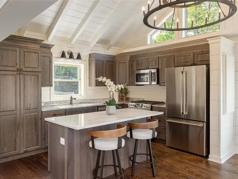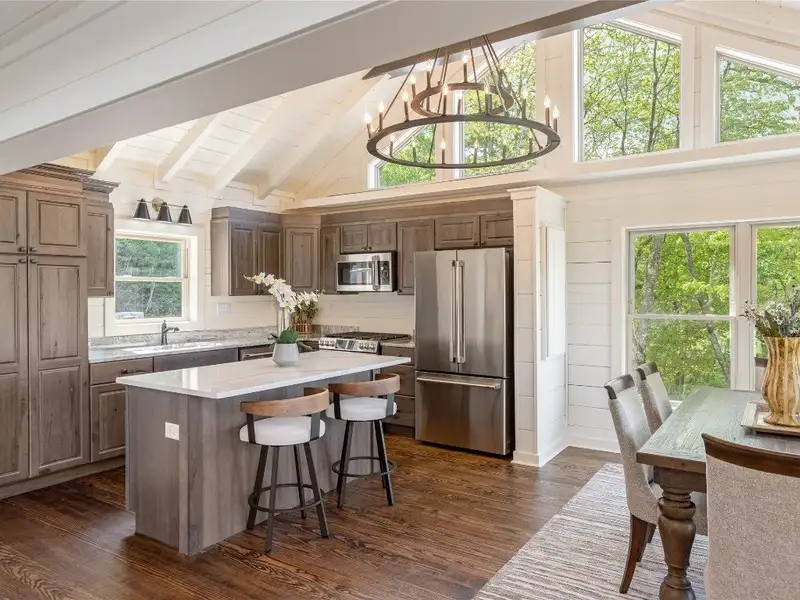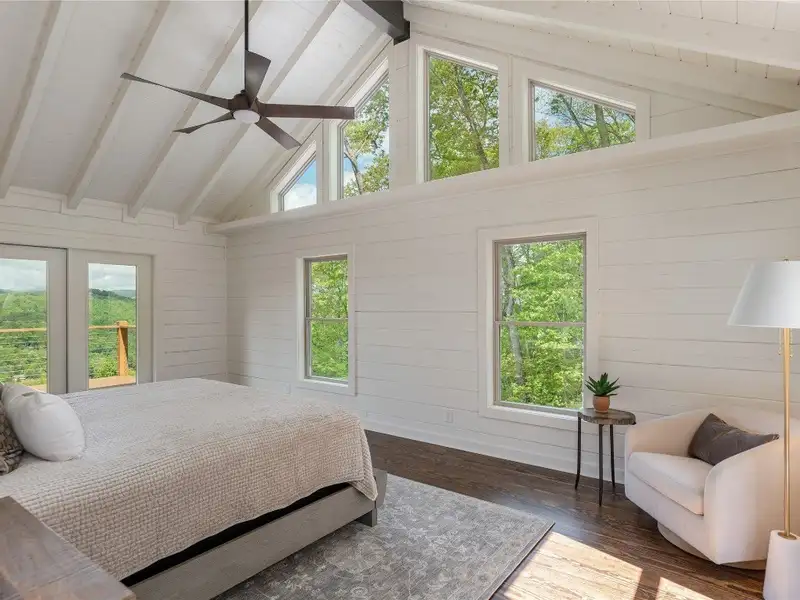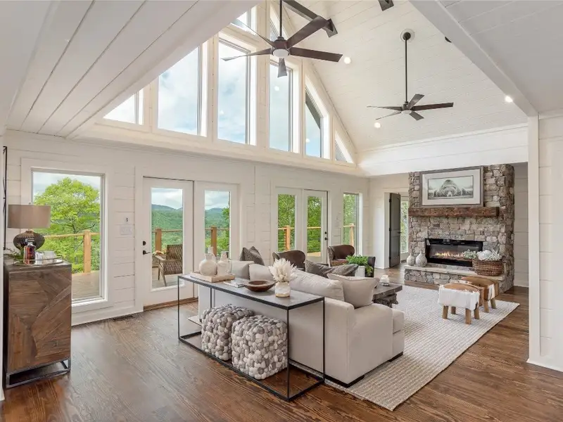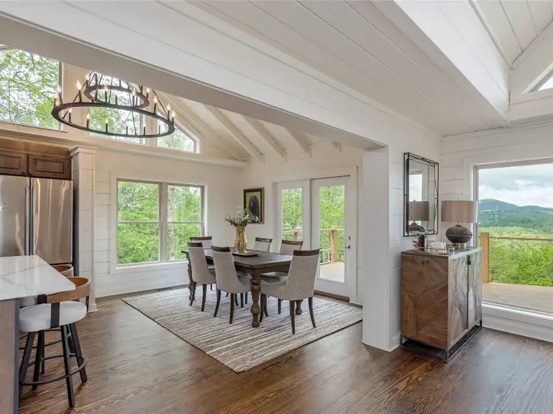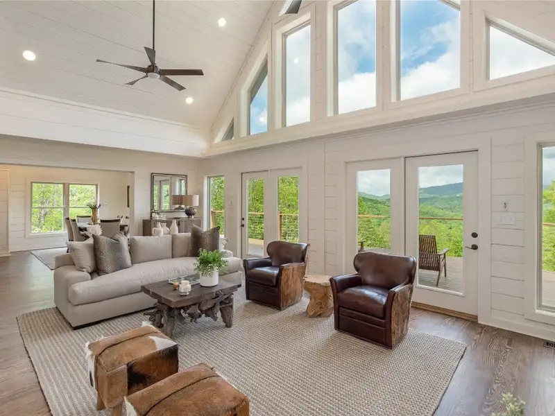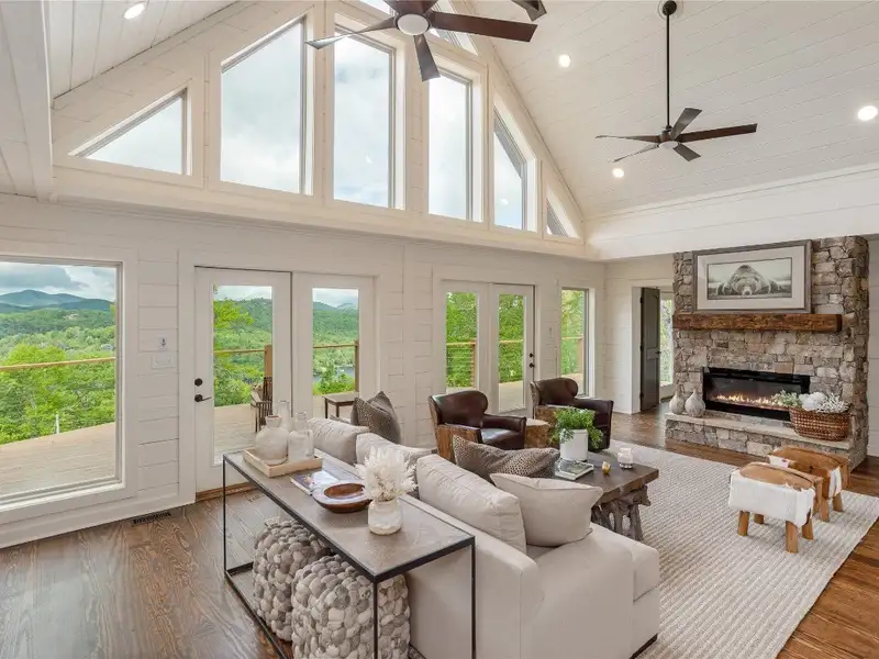 Completed in early 2024, this stunning new Blue Ridge Log Home overlooking Lake Glenville, NC, is designed to showcase the breathtaking sunset views over the lake. Crafted from solid eastern pine logs with extended roof lines and expansive decks, this home seamlessly blends indoor living with the beauty of the outdoors, offering front-row seats to nature's nightly masterpiece. The modern but rustic finishes exude traditional charm while maintaining eco-friendly appeal, perfectly complementing the surrounding landscape. From every angle, you'll be captivated by the long-range vistas of Lake Glenville and the Blue Ridge Mountains, with the sunsets stealing the show each evening. Step inside to a flood of natural light pouring through enormous windows and soaring vaulted ceilings, accentuating the A-frame's airy, open design. The stylish kitchen, featuring granite countertops and top-of-the-line appliances, flows effortlessly into the dining area-ideal for gathering after a day of sunset-watching. The spacious primary suite is a retreat unto itself, complete with a generous living area, double sinks, a massive walk-in shower, and a luxurious soaking tub, all framed by those unforgettable views. Upstairs, a private loft offers an additional bedroom, full bathroom, and ample storage, while the lower level provides even more space with another living area, two bedrooms, and two bathrooms-perfect for family or guests. The true magic happens outside, where the upper-level deck and expansive lower-level patio invite you to unwind with refreshing lake breezes, afternoon cocktails, and, of course, the jaw-dropping sunsets over Lake Glenville. Whether you're grilling, stargazing, or simply soaking in the vibrant hues of dusk, these outdoor spaces elevate every moment. Just minutes from Lake Glenville and the charming village of Cashiers, this home is an ideal weekend escape or year-round haven for those who crave nature's beauty at its finest-especially those unforgettable sunsets.