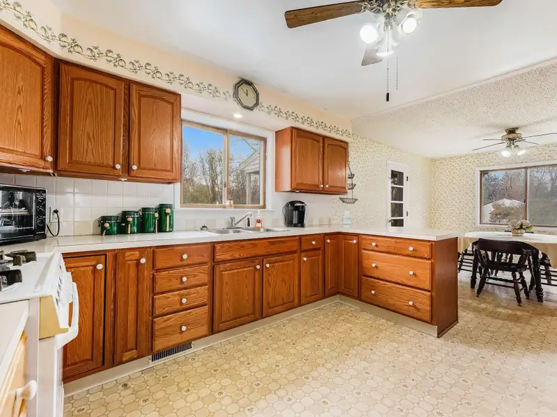 - Large kitchen and dining area