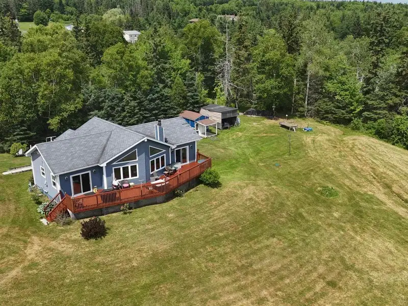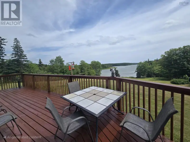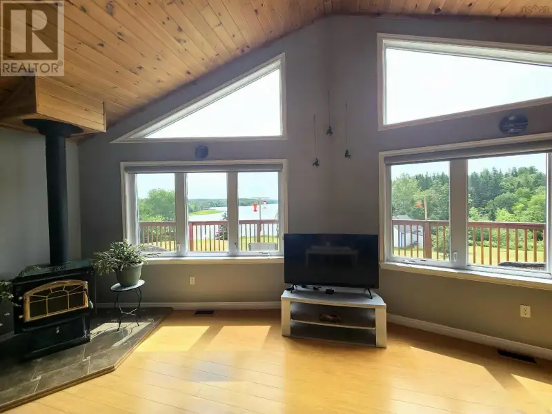 Discover this charming two-bedroom home nestled along a beautiful riverfront, offering breathtaking panoramic views from the primary bedroom, the expansive living room, and the spacious kitchen-dining area. This property combines scenic serenity with comfortable living, making it an ideal retreat for those seeking both tranquility and natural beauty. The primary bedroom features a walk-in closet and direct access to a large patio, providing an excellent space to enjoy the stunning river vistas and outdoor living. The large, open-concept living room is perfect for relaxing or entertaining guests, and it features a cozy wood stove that adds warmth and charm during cooler months. The bright kitchen and dining area are thoughtfully designed, opening onto the large patioideal for outdoor dining, gatherings, or simply soaking in the peaceful water views. Step outside to discover a spacious deck and a beautifully landscaped yard that enhance the home's picturesque setting. Multiple doors lead from the living and dining areas to the deck, creating a seamless flow between indoor and outdoor living spaces. The yard is lush, well-maintained, and perfect for outdoor activities and entertaining. The basement is unfinished but features walkout access, offering excellent potential for future customization. It could easily be transformed into additional bedrooms, a recreation room, or a home office. Plumbing is already in place if you wish to add a bathroom, providing further convenience and flexibility. The home is equipped with a hot air furnace, a heat pump with air conditioning, and a wood stove, ensuring efficient and flexible climate control throughout the year. Located close to the hospital and just 15 minutes from the Town of Port Hawkesbury, this property offers both convenience and scenic beauty, with easy access to amenities while maintaining a peaceful, riverside setting. (id:2494)