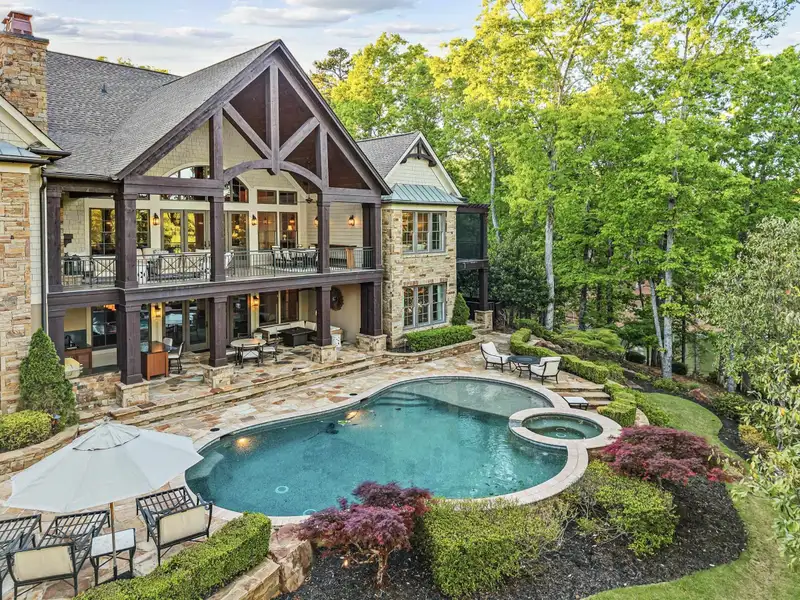 A RARE OPPORTUNITY TO OWN 4.2-ACRE LAKEFRONT ESTATE WITH OVER 500 FT OF SHORELINE IN HORSESHOE BEND AT REYNOLDS LAKE OCONEE WITH RESORT-STYLE AMENITIES AND PRIVACY COMPLIMENTED BY LUSH GROUNDS, CREATING A SERENE ESCAPE. THIS PROPERTY WITH STUNNING MEANDERING DRIVEWAY AND BREATHTAKING VIEWS DELIVER A SEAMLESS BLEND OF REFINED INTERIORS AND ELEVATED OUTDOOR LIVING. THE SOARING GREAT ROOM AND DINING SPACE WELCOME YOU INTO THE MAIN LEVEL WITH A STATEMENT LIMESTONE FIREPLACE AND ABUNDANT NATURAL LIGHT. FRENCH DOORS ANCHOR THE ROOM TO A SPACIOUS OPEN-AIR COVERED PATIO IDEAL FOR ENTERTAINING WITH A SECOND FIREPLACE AND OUTDOOR DINING AREA OVERLOOKING THE POOL WITH A STUNNING LAKE VIEW. THE CHEF’S KITCHEN FEATURES 12-FOOT COFFERED CEILINGS, GRANITE COUNTERTOPS, CUSTOM CABINETRY, AND TOP-TIER APPLIANCES BY SUB-ZERO, WOLF, AND MIELE. A KEEPING ROOM WITH STONE FIREPLACE, BREAKFAST NOOK, AND LAKESIDE SCREENED PATIO INVITE RELAXED LIVING. ALSO ON THE MAIN LEVEL, A NICELY APPOINTED OFFICE SITS JUST OUTSIDE THE PRIMARY SUITE, CREATING A THOUGHTFUL TRANSITION INTO THE PRIVATE QUARTERS. THE PRIMARY BEDROOM SHOWCASES TRAY CEILINGS, DUAL WALK-IN CLOSETS, AND A SPA-INSPIRED BATH WITH A SOAKING TUB AND WALK-IN SHOWER. A SERENE SCREENED PORCH, PERFECT FOR MORNING COFFEE OR TAKING IN SUNSET VIEWS, EXTENDS THE SPACE WITH A QUIET CONNECTION TO THE OUTDOORS. THE TERRACE LEVEL IS THOUGHTFULLY DESIGNED FOR ENTERTAINING, FEATURING A MEDIA LOUNGE, POOL TABLE, PUB ROOM WITH A 650-BOTTLE WINE CELLAR AND TASTING ROOM, AND A HOME GYM WITH A CONVENIENT SHOWER. AN ENTERTAINMENT KITCHEN OPENS TO A COVERED PATIO WITH A FULLY EQUIPPED OUTDOOR KITCHEN, INCLUDING A BUILT-IN GRILL, EVO, STONE ISLAND WITH BAR SEATING, GAS FIREPIT, AND INVITING LOUNGE AREA OVERLOOKING THE HEATED POOL AND HOT TUB. A PRIVATE WALKWAY LEADS TO A LARGE DOCK WITH COVERED BOAT LIFT. ENJOY YOUR OWN NATURE TRAIL IN YOUR PROPERTY. COMPLETING THE INTERIORS, THE GUEST SUITE ABOVE THE GARAGE OFFERS AMPLE SPACE WITH A SITTING AREA/BEDROOM AND FULL BATH, PERFECT FOR EXTENDED VISITS OR LONG TERM STAYS. ADDITIONAL SPACES INCLUDE A WALK-IN PANTRY, POWDER ROOM, LAUNDRY ROOM, HOME OFFICE NOOK, AND BUILT-IN MUDROOM OFF THE 3-CAR GARAGE. WHOLE-HOME AUDIO, INCLUDING INVISIBLE SPEAKERS THROUGHOUT, ENHANCE EVERY SPACE. JUST MINUTES FROM RICHLAND POINTE AND A SHORT BOAT RIDE TO THE RITZ-CARLTON, IT IS RARE TO FIND LAKEFRONT ACREAGE THAT OFFERS BOTH SANCTUARY AND CONNECTION IN ONE OF REYNOLDS’ MOST COVETED LOCATIONS. MEMBERSHIP AVAILABLE.