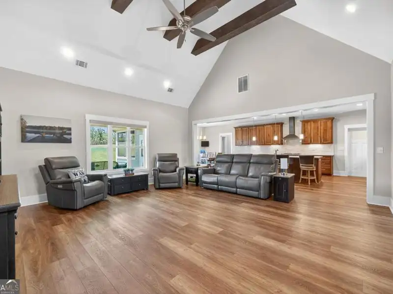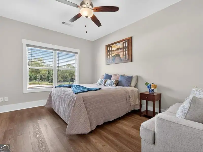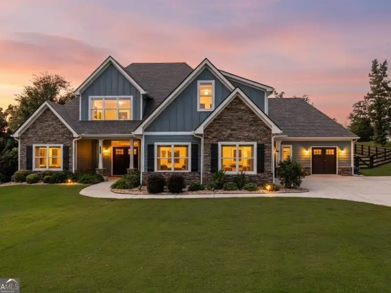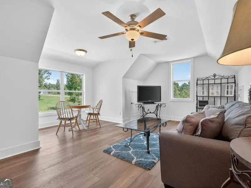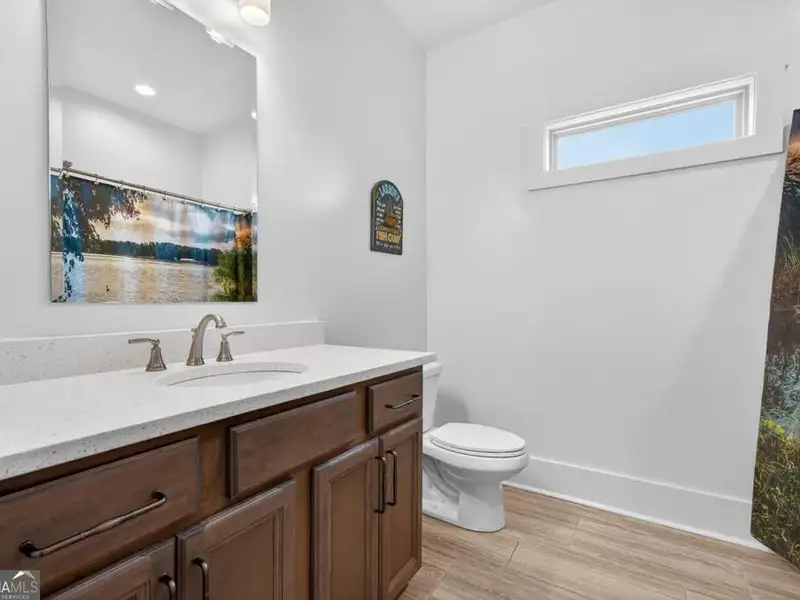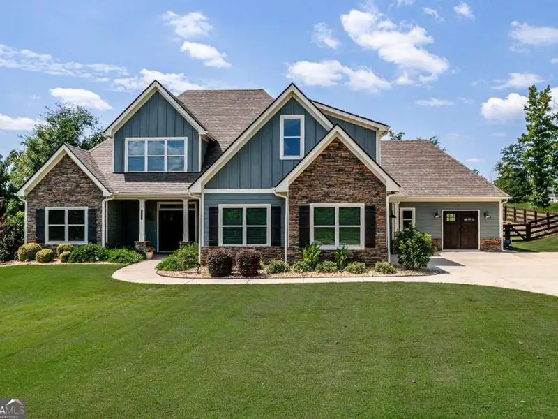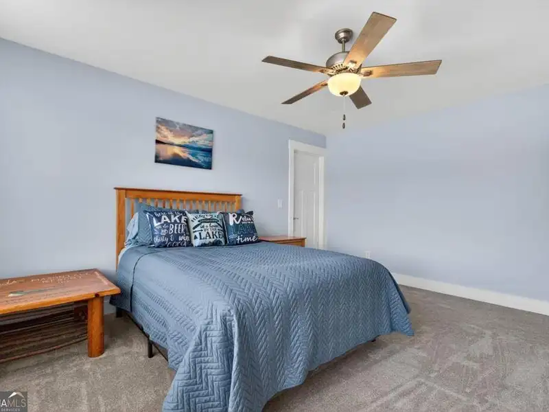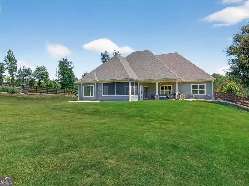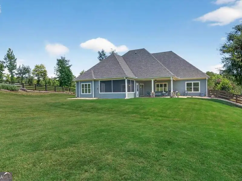 Discover Your Dream Home at Lake Oconee! Experience unparalleled craftsmanship and thoughtful design in this stunning 2021 custom-built home, nestled on a generous 1.23-acre lot within the gated Bayside community. Privately situated yet close to Lake Oconee's vibrant amenities, this residence boasts seasonal lake views and a deeded boat slip, providing a perfect balance of privacy and access to outdoor adventures. Step inside the home to a spacious great room featuring vaulted ceilings adorned with decorative beams and expansive windows that fill the space with natural light. The open-concept layout seamlessly connects the great room to the gourmet kitchen, where a magnificent 10-foot island with a farmhouse sink takes center stage. Rich hickory cabinetry offers ample storage, complemented by elegant quartzite countertops and a vented range hood for functional beauty. A well-appointed walk-in pantry enhances everyday convenience. The main-level primary suite is a serene retreat, complete with vaulted ceilings, direct access to a screened porch, and a generous walk-in closet. The luxurious ensuite bathroom features a large walk-in shower, a stylish quartz-topped double sink vanity, and porcelain tile flooring. Two additional spacious bedrooms and a full bath are also located on the main floor. Ascend to the upper level, where a private suite awaits, offering flexibility for guests or a dedicated workspace. This suite includes a bedroom, full bath, living area, and a kitchenette for added convenience. Additional storage is easily accessible through the walk-in attic. The two-car garage, finished with low-maintenance epoxy flooring, connects to a versatile flex space accessible via carriage doors; ideal for a golf cart, gym equipment, or even a pet-washing station with a utility sink. The fully landscaped yard features a large fenced area, storage shed, and two outdoor living spaces. Enjoy dining al fresco on your screened porch or relaxing with a book or glass of wine on the back patio. Both spaces are great for entertaining! As a Bayside resident, you'll enjoy a maintenance-free deeded boat slip (#14) with new composite decking, access to a private boat ramp, and a lakeside common area complete with a gazebo, fire pit, picnic tables, putting greens, and boat cleaning facilities. This exceptional home is situated just minutes from Lake Oconee Academy, St. Mary's Hospital, and I-20, offering the perfect blend of luxury and low-maintenance lake living.