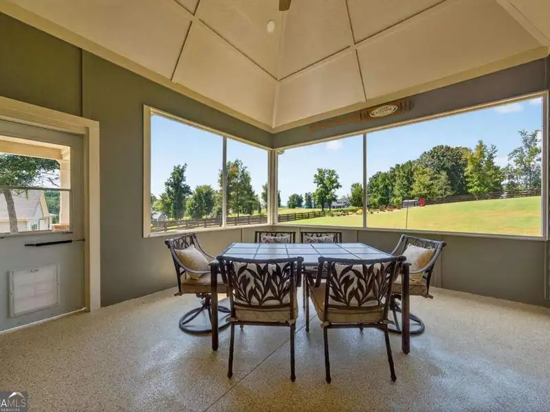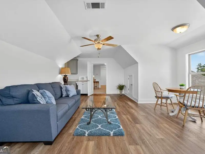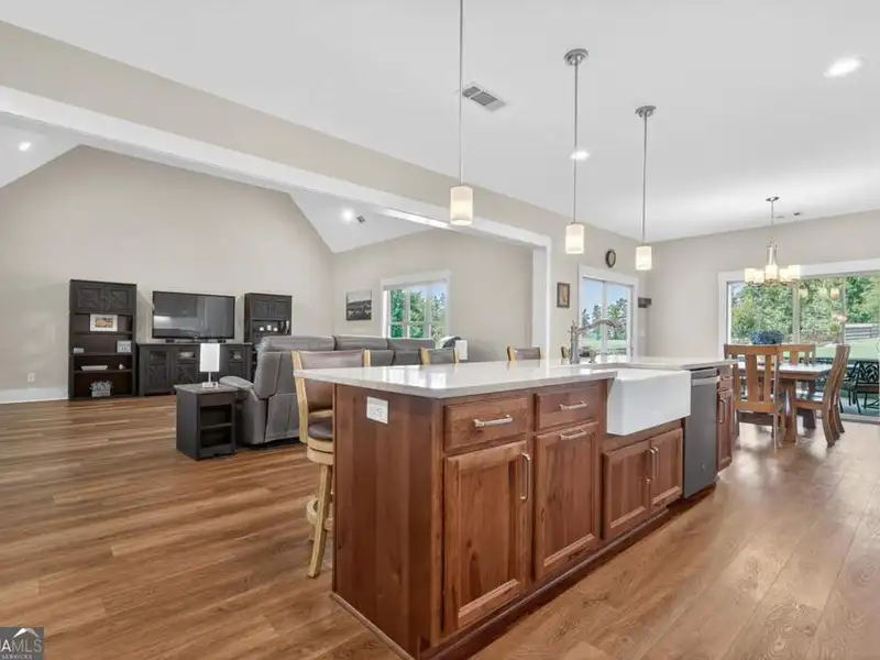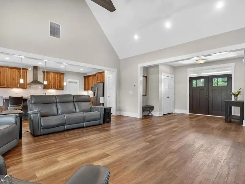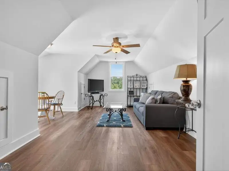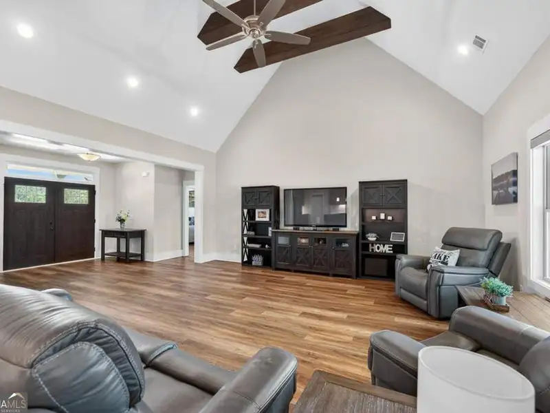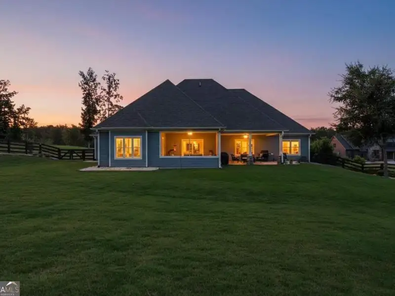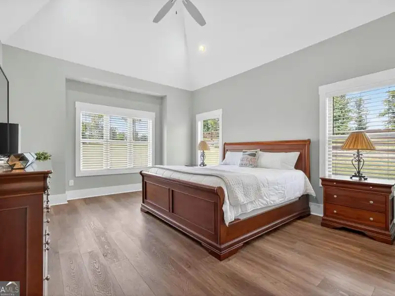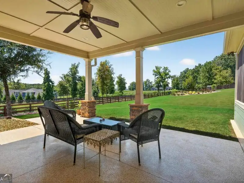 Discover Your Dream Home at Lake Oconee! Experience unparalleled craftsmanship and thoughtful design in this stunning 2021 custom-built home, nestled on a generous 1.23-acre lot within the gated Bayside community. Privately situated yet close to Lake Oconee's vibrant amenities, this residence boasts seasonal lake views and a deeded boat slip, providing a perfect balance of privacy and access to outdoor adventures. Step inside the home to a spacious great room featuring vaulted ceilings adorned with decorative beams and expansive windows that fill the space with natural light. The open-concept layout seamlessly connects the great room to the gourmet kitchen, where a magnificent 10-foot island with a farmhouse sink takes center stage. Rich hickory cabinetry offers ample storage, complemented by elegant quartzite countertops and a vented range hood for functional beauty. A well-appointed walk-in pantry enhances everyday convenience. The main-level primary suite is a serene retreat, complete with vaulted ceilings, direct access to a screened porch, and a generous walk-in closet. The luxurious ensuite bathroom features a large walk-in shower, a stylish quartz-topped double sink vanity, and porcelain tile flooring. Two additional spacious bedrooms and a full bath are also located on the main floor. Ascend to the upper level, where a private suite awaits, offering flexibility for guests or a dedicated workspace. This suite includes a bedroom, full bath, living area, and a kitchenette for added convenience. Additional storage is easily accessible through the walk-in attic. The two-car garage, finished with low-maintenance epoxy flooring, connects to a versatile flex space accessible via carriage doors; ideal for a golf cart, gym equipment, or even a pet-washing station with a utility sink. The fully landscaped yard features a large fenced area, storage shed, and two outdoor living spaces. Enjoy dining al fresco on your screened porch or relaxing with a book or glass of wine on the back patio. Both spaces are great for entertaining! As a Bayside resident, you'll enjoy a maintenance-free deeded boat slip (#14) with new composite decking, access to a private boat ramp, and a lakeside common area complete with a gazebo, fire pit, picnic tables, putting greens, and boat cleaning facilities. This exceptional home is situated just minutes from Lake Oconee Academy, St. Mary's Hospital, and I-20, offering the perfect blend of luxury and low-maintenance lake living.