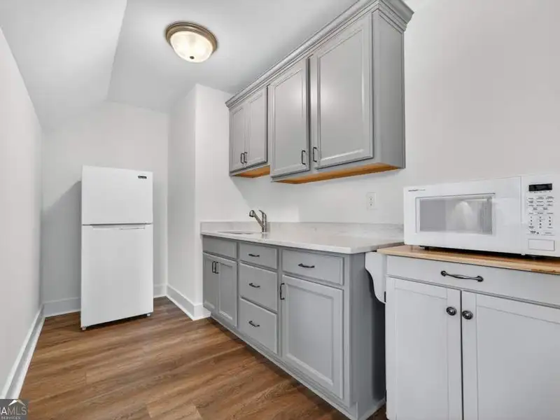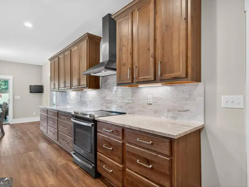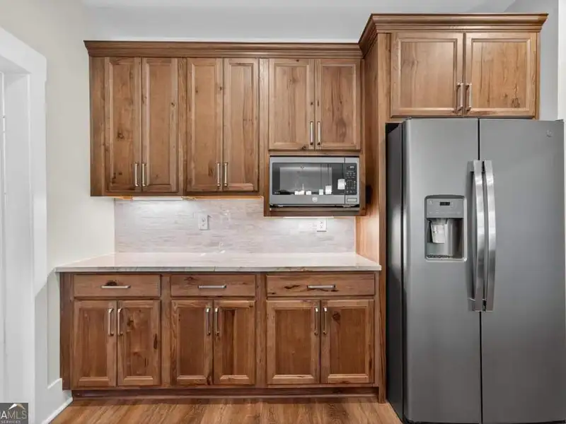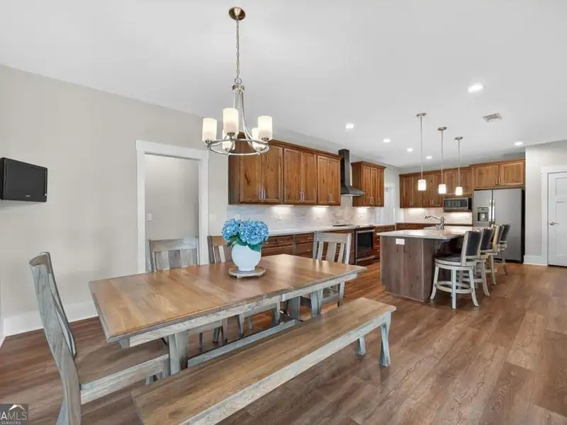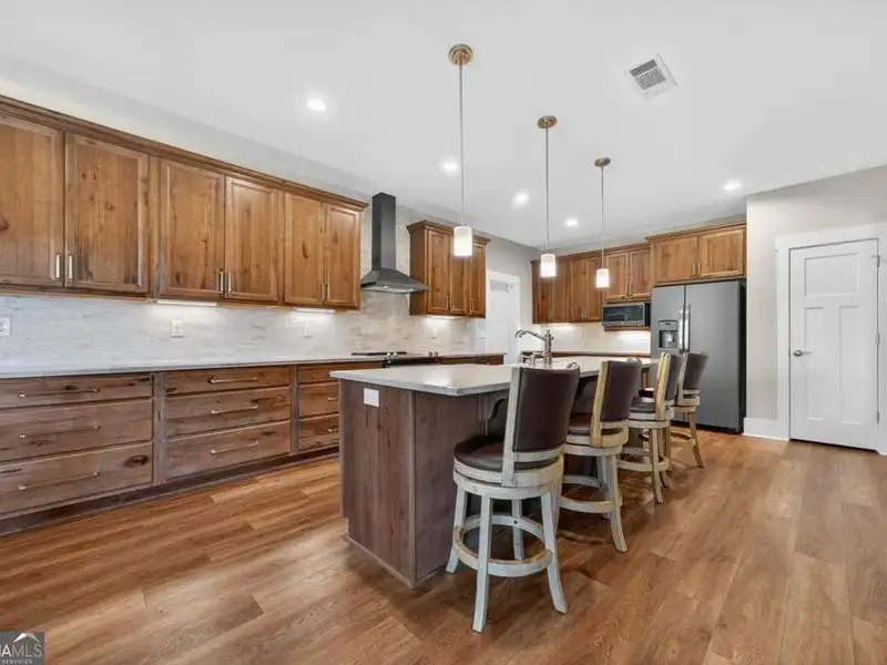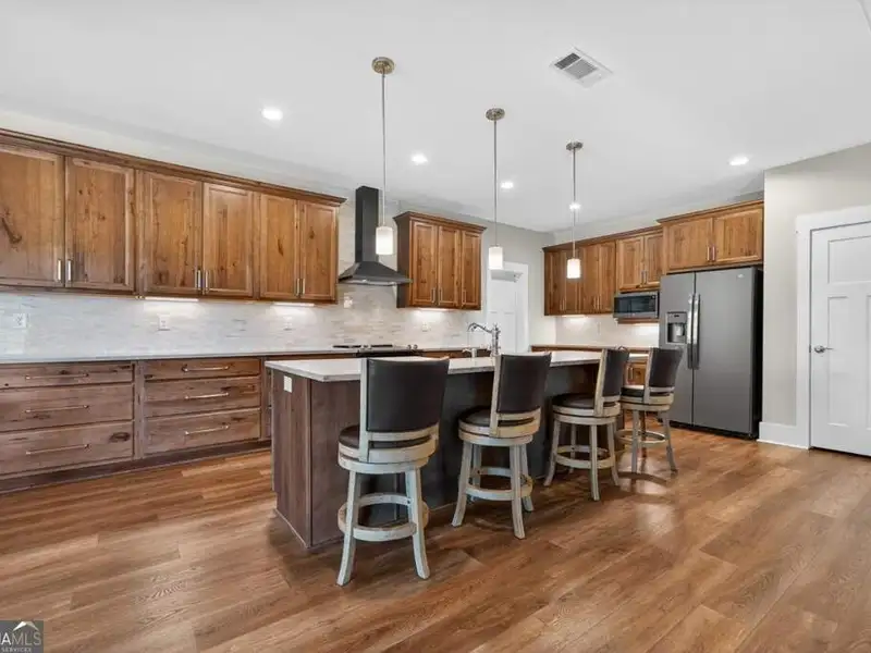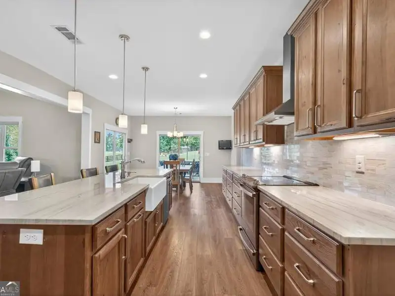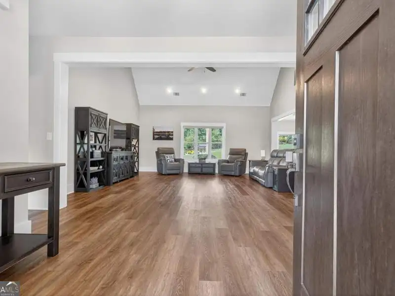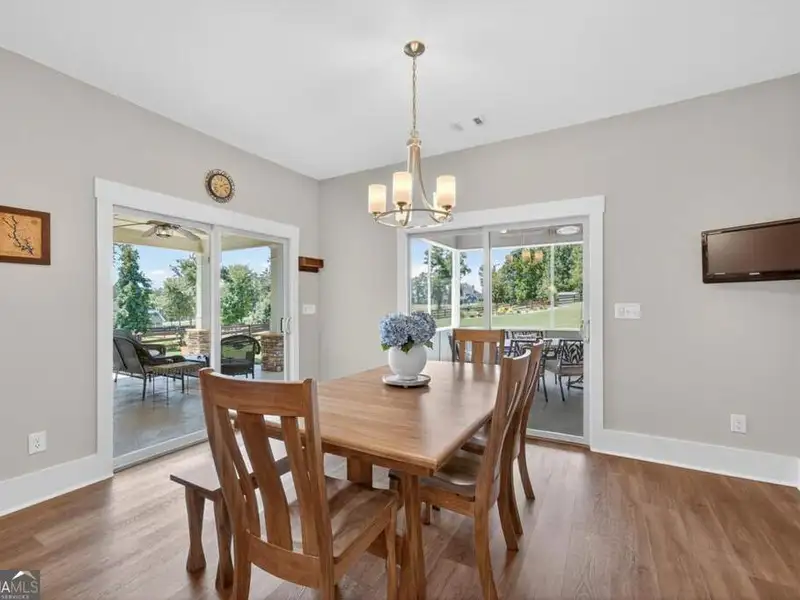 Discover Your Dream Home at Lake Oconee! Experience unparalleled craftsmanship and thoughtful design in this stunning 2021 custom-built home, nestled on a generous 1.23-acre lot within the gated Bayside community. Privately situated yet close to Lake Oconee's vibrant amenities, this residence boasts seasonal lake views and a deeded boat slip, providing a perfect balance of privacy and access to outdoor adventures. Step inside the home to a spacious great room featuring vaulted ceilings adorned with decorative beams and expansive windows that fill the space with natural light. The open-concept layout seamlessly connects the great room to the gourmet kitchen, where a magnificent 10-foot island with a farmhouse sink takes center stage. Rich hickory cabinetry offers ample storage, complemented by elegant quartzite countertops and a vented range hood for functional beauty. A well-appointed walk-in pantry enhances everyday convenience. The main-level primary suite is a serene retreat, complete with vaulted ceilings, direct access to a screened porch, and a generous walk-in closet. The luxurious ensuite bathroom features a large walk-in shower, a stylish quartz-topped double sink vanity, and porcelain tile flooring. Two additional spacious bedrooms and a full bath are also located on the main floor. Ascend to the upper level, where a private suite awaits, offering flexibility for guests or a dedicated workspace. This suite includes a bedroom, full bath, living area, and a kitchenette for added convenience. Additional storage is easily accessible through the walk-in attic. The two-car garage, finished with low-maintenance epoxy flooring, connects to a versatile flex space accessible via carriage doors; ideal for a golf cart, gym equipment, or even a pet-washing station with a utility sink. The fully landscaped yard features a large fenced area, storage shed, and two outdoor living spaces. Enjoy dining al fresco on your screened porch or relaxing with a book or glass of wine on the back patio. Both spaces are great for entertaining! As a Bayside resident, you'll enjoy a maintenance-free deeded boat slip (#14) with new composite decking, access to a private boat ramp, and a lakeside common area complete with a gazebo, fire pit, picnic tables, putting greens, and boat cleaning facilities. This exceptional home is situated just minutes from Lake Oconee Academy, St. Mary's Hospital, and I-20, offering the perfect blend of luxury and low-maintenance lake living.