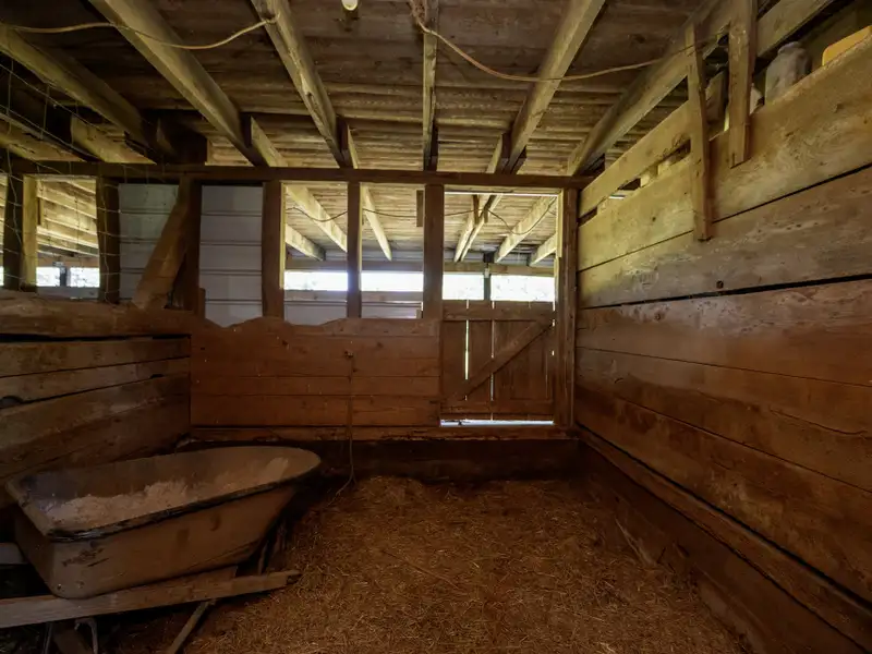• Detached barn with stalls and equipment shed