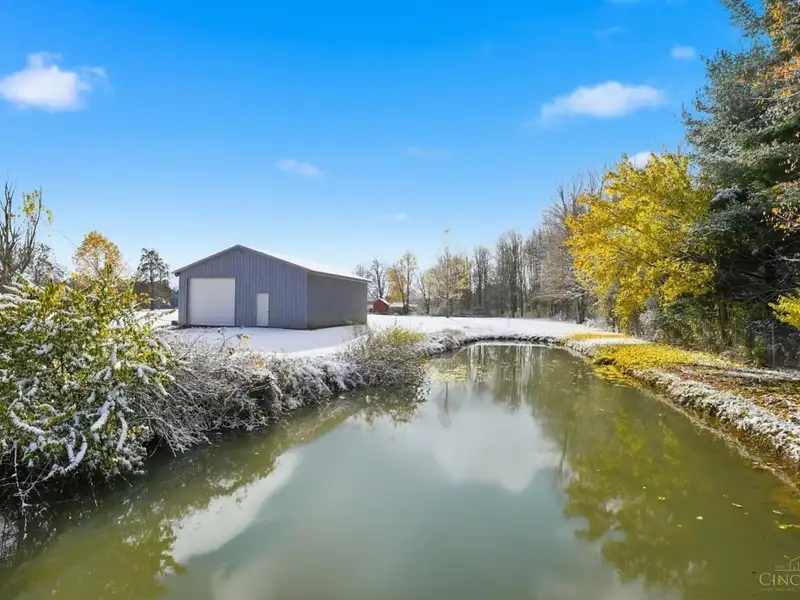 The snow just added a little extra charm to this 5 Acre property in Little Miami Schools. 3 bedrooms, 1.5 Baths plus an enclosed porch, large pond and 36' x 48' outbuilding