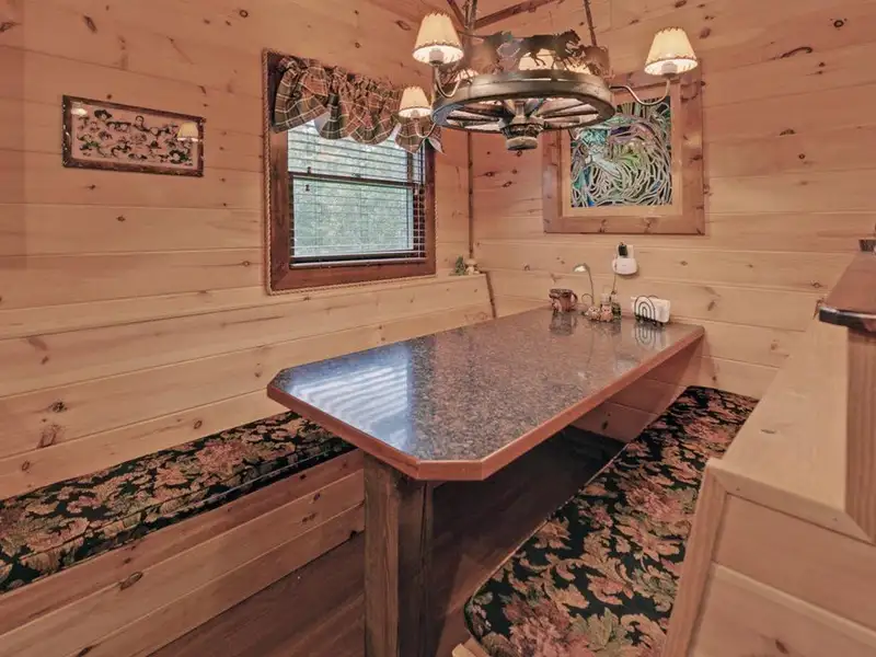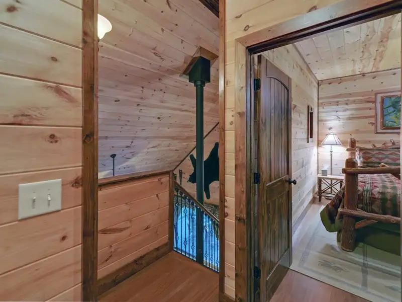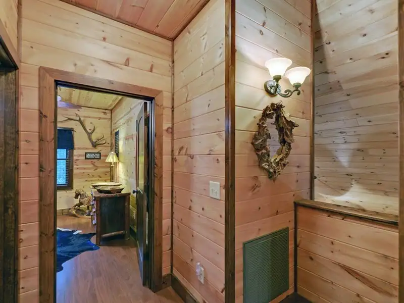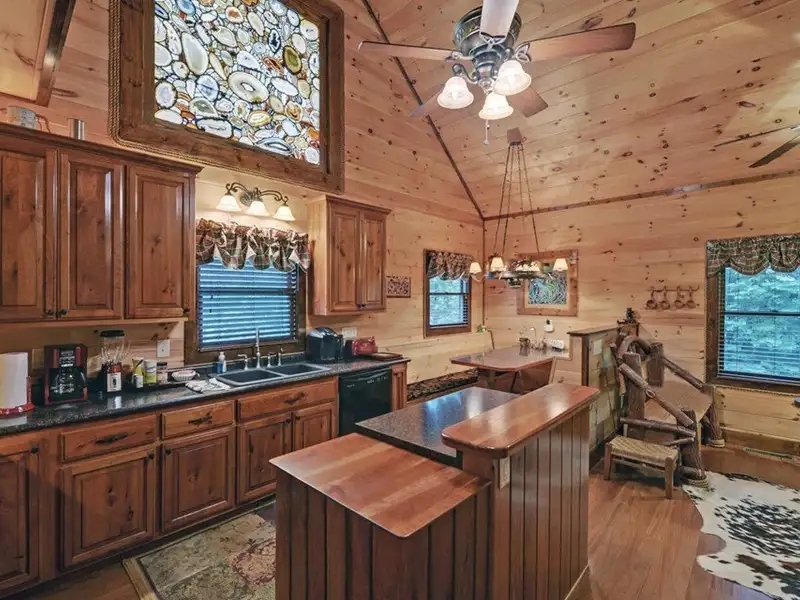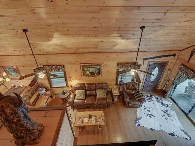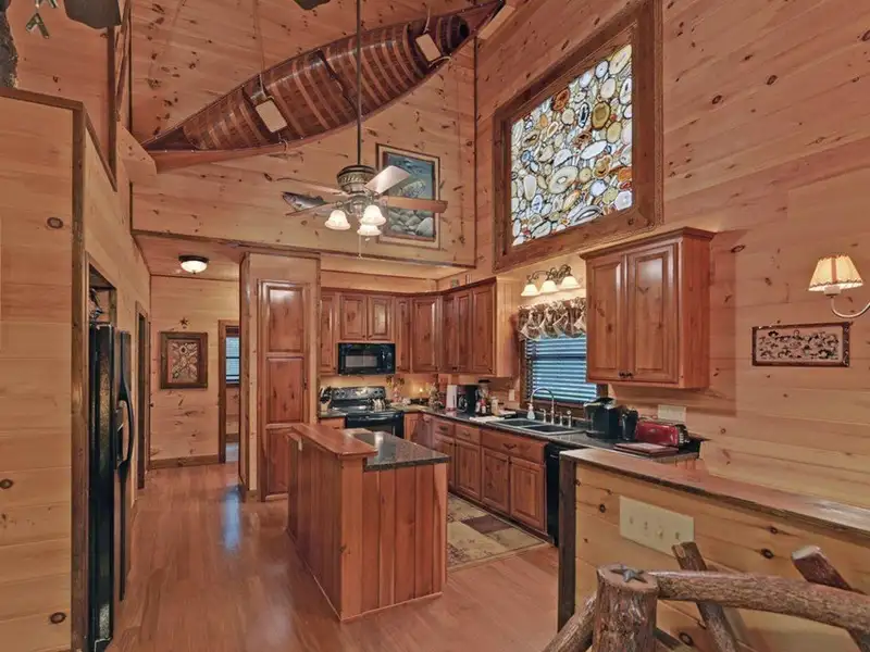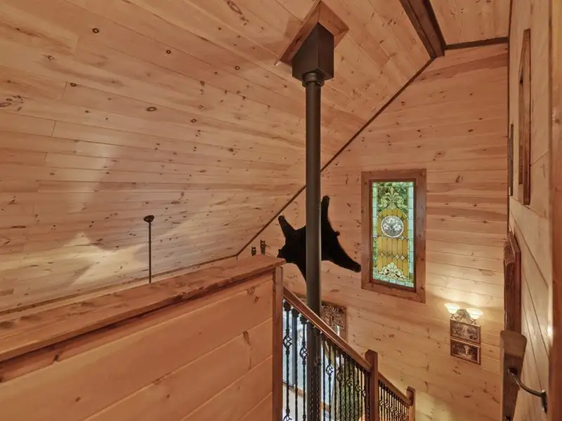 - Soaring cathedral ceilings with wood interior