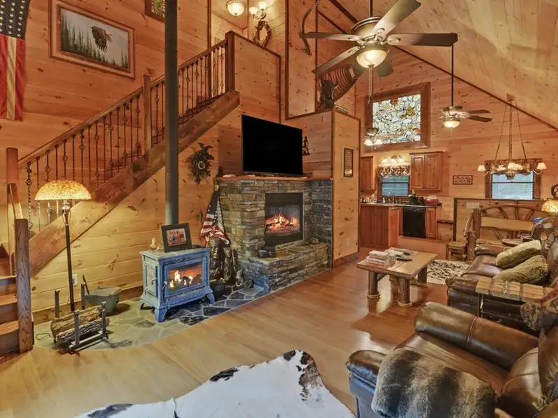 - Cozy fireplace and wood-burning stove