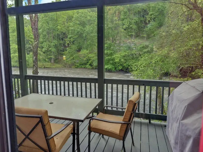 - Enclosed porch overlooking the river