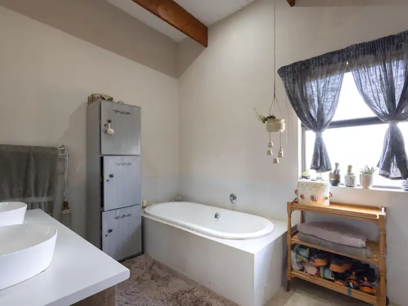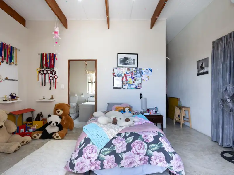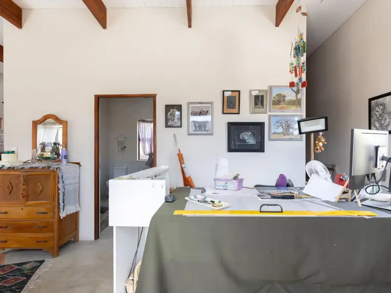 The home offers three generous en-suite bedrooms, each with its own walk-in closet. Two bedrooms are located within the main living area, while the third ΓÇö the larger and more private suite ΓÇö is set apart, overlooking the elevated swimming pool and majestic Drakensberg mountain views. Every bedroom is fitted with air-conditioning and ceiling fans, ensuring comfort throughout the seasons. A guest toilet completes the interior layout.
