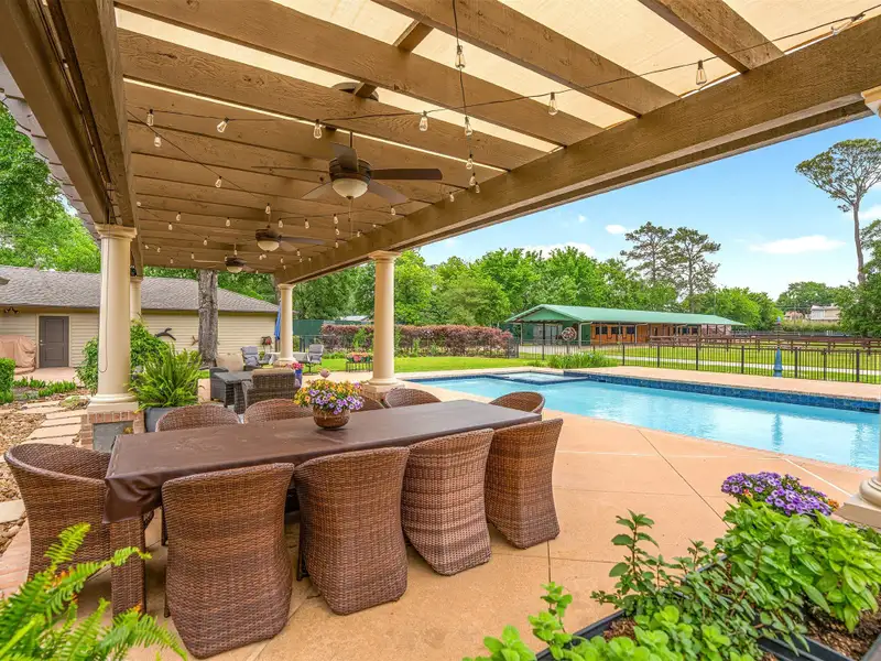 - Sparkling pool with alfresco dining area