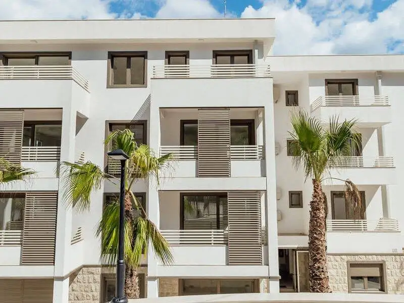 The complex features round-the-clock video surveillance, an electronic access system, and comprehensive on-site management that handles everything from parking (underground parking for 39 cars available, with spaces priced between €12,000 and €15,000, plus additional open parking) to laundry facilities. Additional services include airport meet-and-greet arrangements and boat rides around the bay for residents.