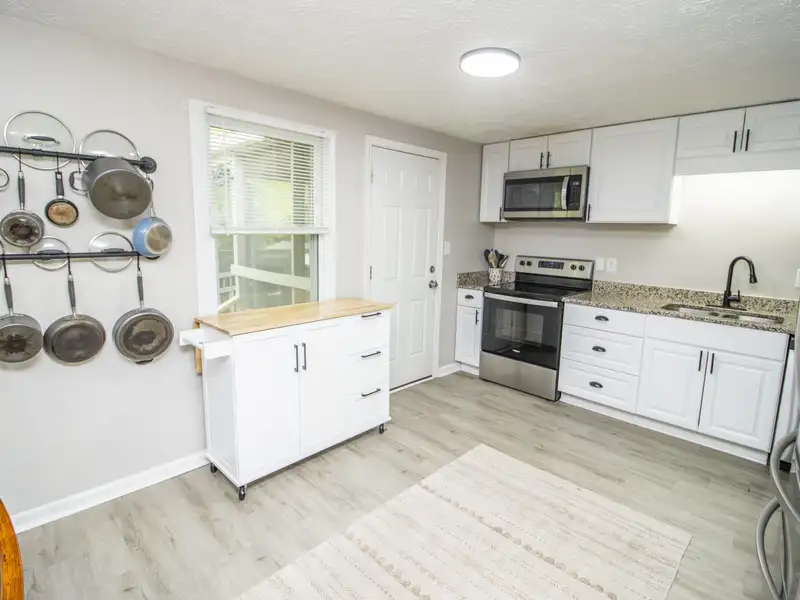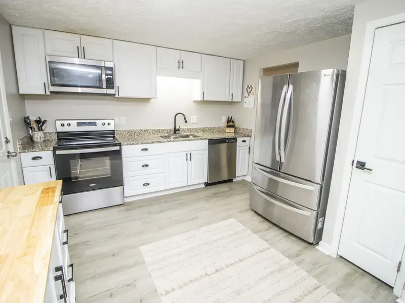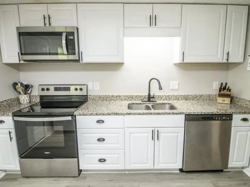 - Granite countertops in kitchen