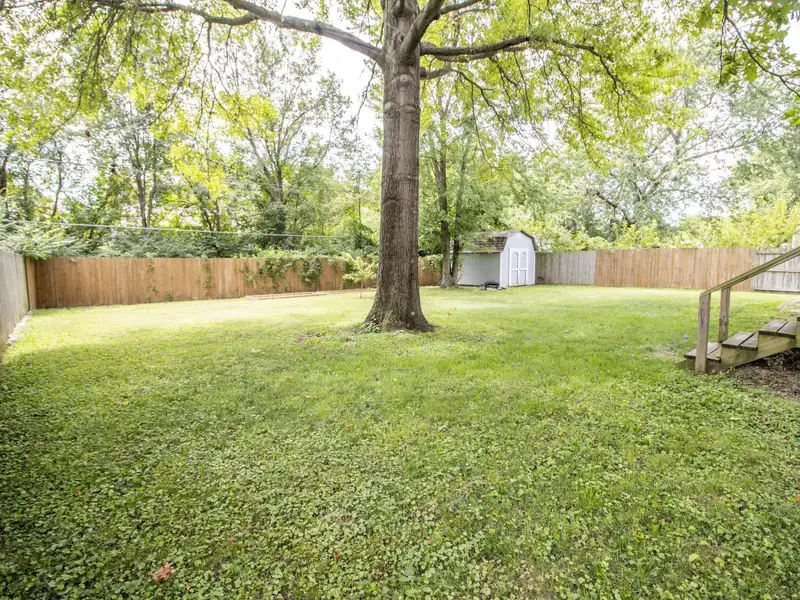 - Large fenced backyard with mature trees