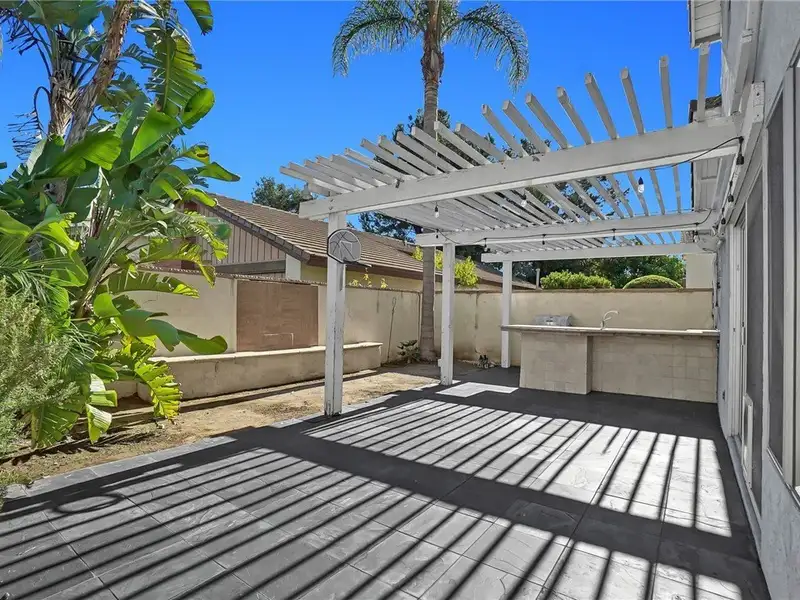 - Covered patio with built-in features