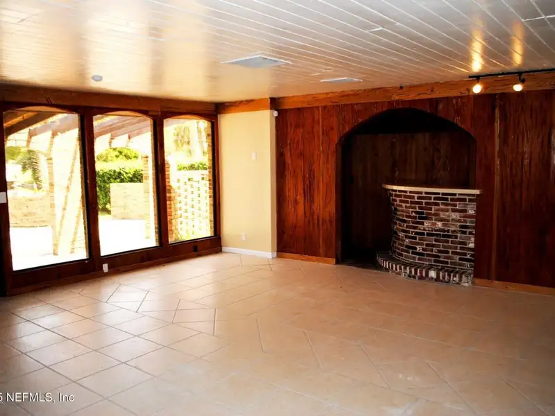 - Large family room with fireplace and bar