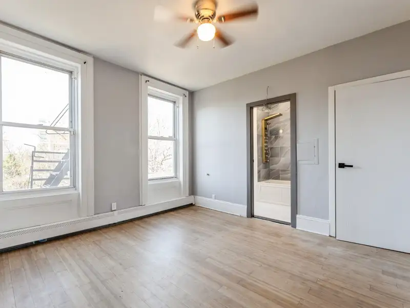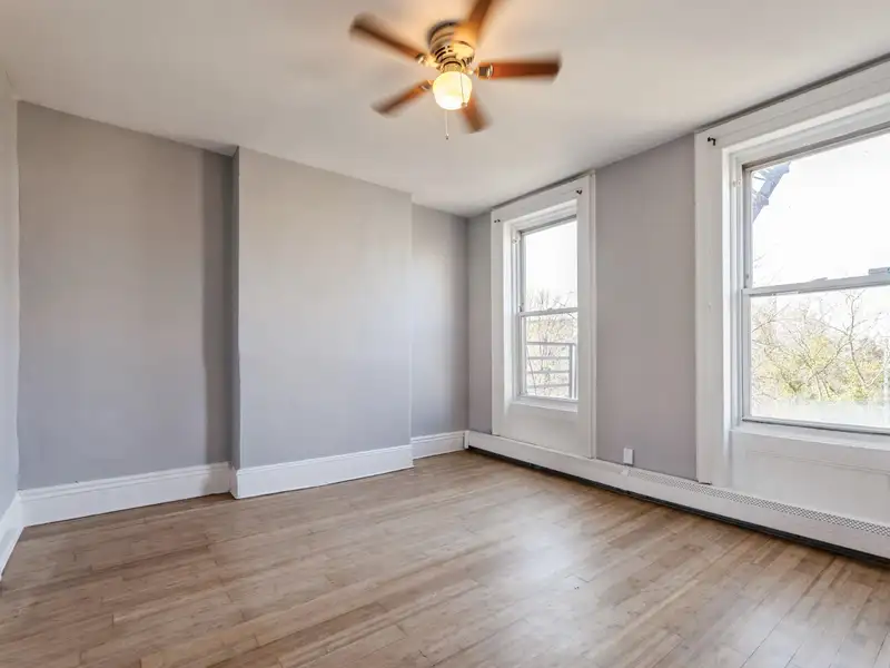 - High ceilings and original wood floors