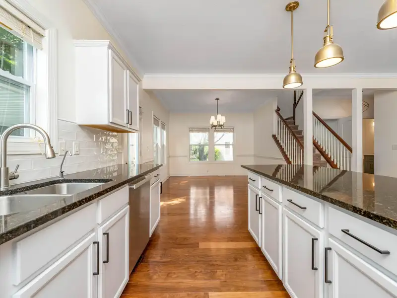 - Granite kitchen countertops and island