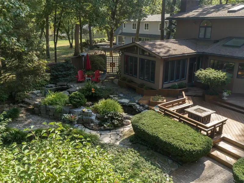 The Whippoorwill Way of Life: Your Dream Home in Texas Township Welcome to an exceptionally warm and inviting custom-built estate in a sought-after neighborhood. This property isn't just a house; it's a home you'll love to come back to, designed for easy, comfortable living where every detail enhances your experience. This elegant yet cozy residence effortlessly blends a luxurious interior with a magnificent natural sanctuary. Designed for Comfort and Entertaining: The well thought out layout flows beautifully for both daily life and entertaining. The main floor features a comfortable living room, a formal dining room ideal for memorable dinners, and an inviting sunroom with panoramic views of the backyard's Japanese water feature. Culinary enthusiasts will adore the chef's kitchen with dual sinks, high end appliances, granite counters, and incredible storage, all flowing into a casual eating area. The main level also boasts a sophisticated study with a full bar, a well-equipped hobby room, and a large mudroom with individual closets for every member in the household leading directly to the oversized three car garage. The Ultimate Retreats: Upstairs, the extraordinary primary suite redefines comfort with two separate bathrooms, and exceptional built-in storage. The upper level also features a lovely ensuite bedroom and a private wing behind French doors - an ideal household or guest suite with a separate living area and two additional bedrooms, each with a vanity, and a shared bath. The lower level is dedicated to entertainment and wellness, featuring an incredible home theater with a snack room, a spacious mirrored home gym, and a post-workout sauna. A Backyard Oasis for All Ages: Step outside to a sprawling, magical backyard sanctuary designed in a circle of four distinct fenced-in garden areas. The Japanese Garden features a Koi Pond and an enormous deck, perfect for outdoor living with a fire pit, hot tub, and dining area. Follow the walkways to the English Country Garden with quiet seating, the serene Gazebo & Butterfly Garden with a soothing "Rocky Mountain" stream overlooking Portage Creek, and an amazing play structure combined with floral beauty. This immaculate, curated property is truly a "staycation" home - a legacy waiting for your next chapter. Website:
